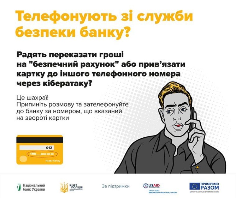 - по телефону нікому не розповідайте ніяких відомостей зі своєї картки;