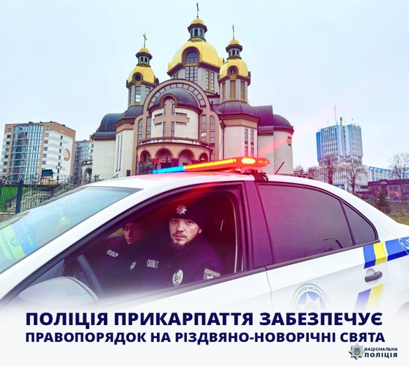 У різдвяний період з 24-25 грудня правоохоронці чергуватимуть поблизу храмів, де відбуваються святкові богослужіння, а також посилено патрулюватимуть в Івано-Франківську та районних центрах. До охорони правопорядку залучені співробітники усіх підрозділів поліції Івано-Франківщини. Збільшено кількість піших нарядів, створені групи реагування патрульної поліції додаткові слідчо-оперативні групи.