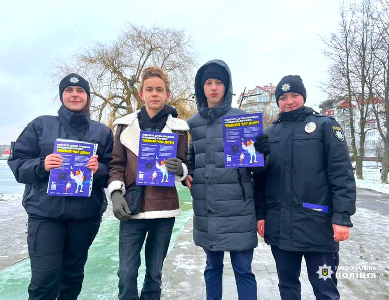 Офіцери поліції наголосили підліткам на необхідність дотримання Правил дорожнього руху, пояснили про небезпеку виходу на тонкий лід та застерегли від небезпечних ігор поблизу замерзлих водойм. Окрім того, нагадали й про мінну безпеку.