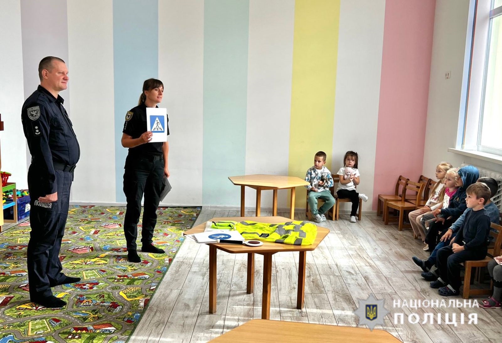 У першу чергу у ігровій наочній формі правоохоронці пояснили дітям, як правильно перетинати дорогу на пішохідному переході. Крім цього, продемонстрували найпоширеніші дорожні знаки та розповіли про різні ситуації, які можуть виникнути на дорозі.