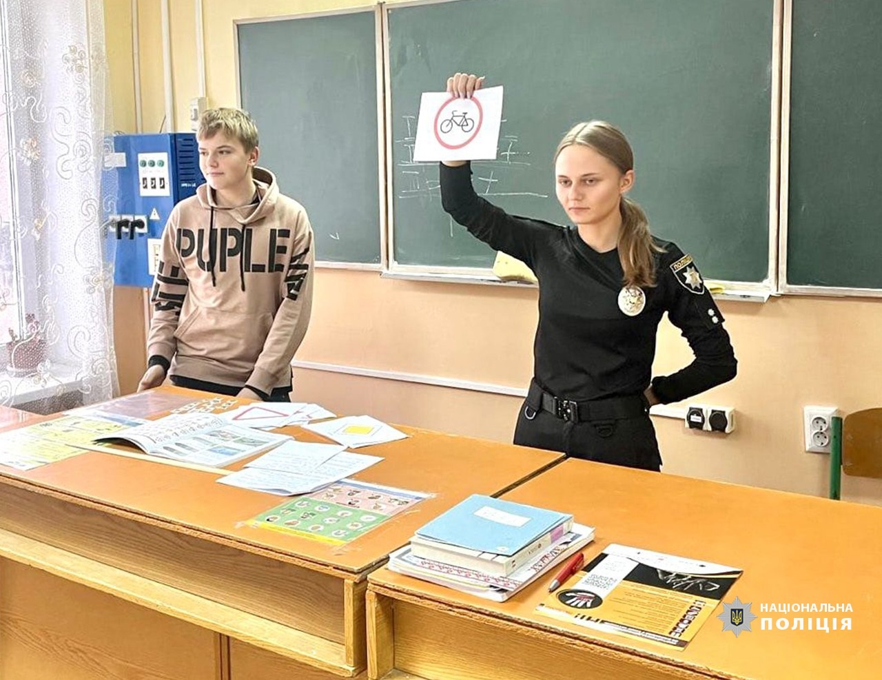 Поліцейські навчали ліцеїстів про права та обов’язки пішоходів, роз’яснюють значення дорожніх знаків та нагадували про найважливіші правила, які допоможуть їм вберегтись від небезпеки на дорозі.