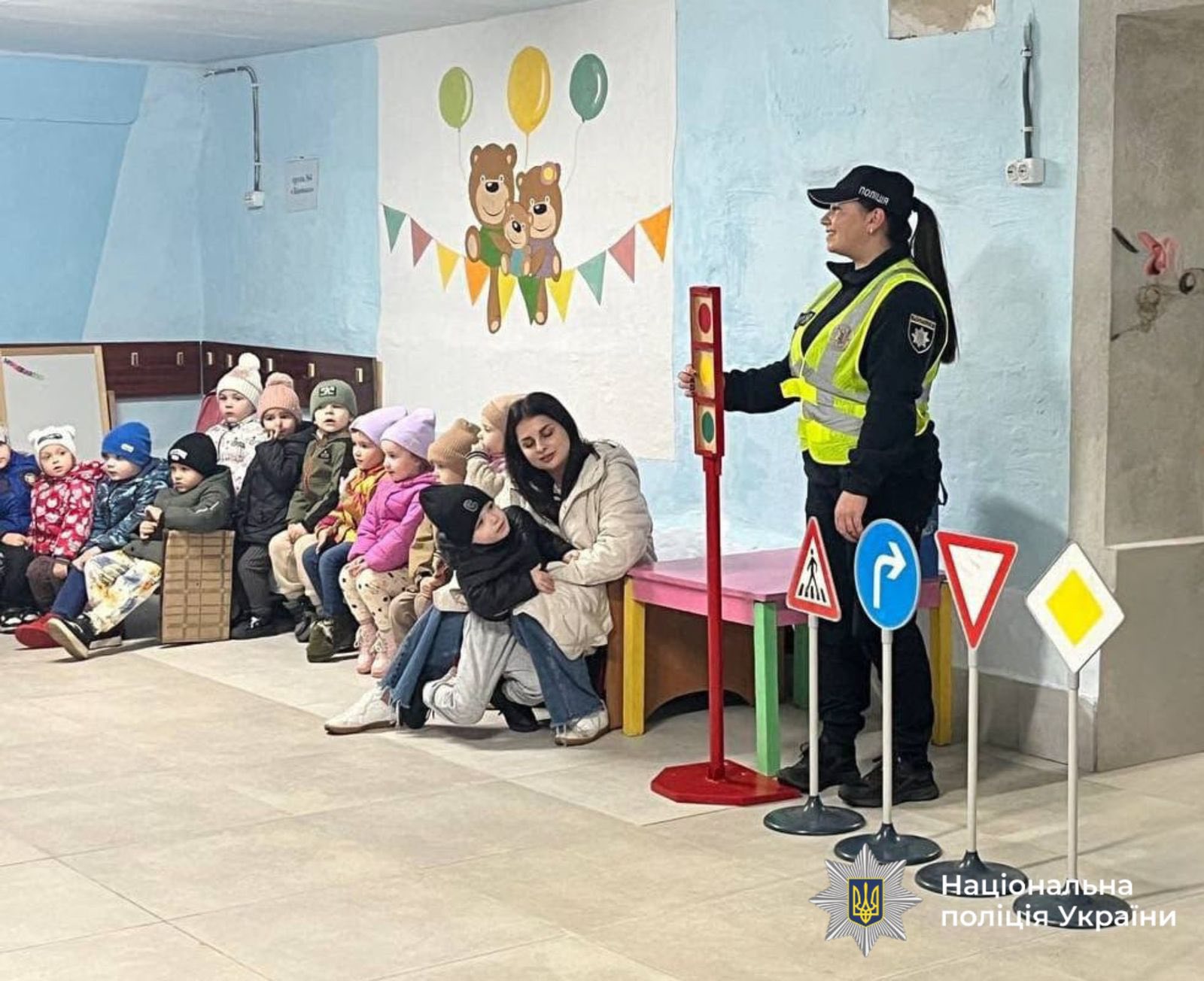 З перших хвилин зустрічі поліцейські влаштували для малюків інтерактивне заняття: розповіли цікаві історії про пригоди пішоходів, показали, як правильно переходити дорогу, та разом відтворили ситуації, які можуть трапитися у повсякденному житті.
