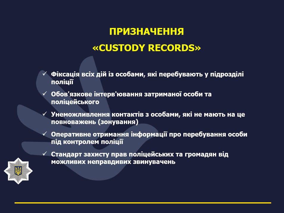 «Custody Records» забезпечує права громадян, які знаходяться під контролем поліції, та самих правоохоронців відповідно до європейських стандартів.