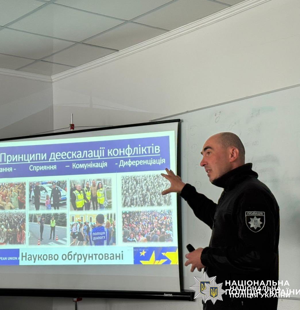 В тренінговому центрі Головного управління Національної поліції в області відбувся семінар-тренінг для співробітників позаштатної групи превентивної комунікації – працівників територіальних підрозділів, які у своїй щоденній роботі безпосередньо взаємодіють із громадянами. Поліцейські опанували сучасні методики, що дають змогу оперативно реагувати на виклики, зберігаючи при цьому довіру населення.