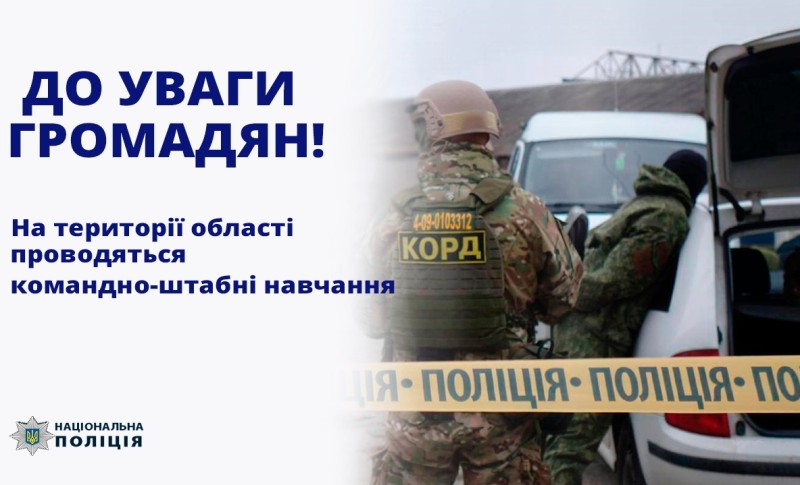 Командно-штабні навчання проводитимуться в умовах, максимально наближених до реальних, у зв’язку з чим на території̈ області може відбуватися тимчасове перекриття чи обмеження руху.