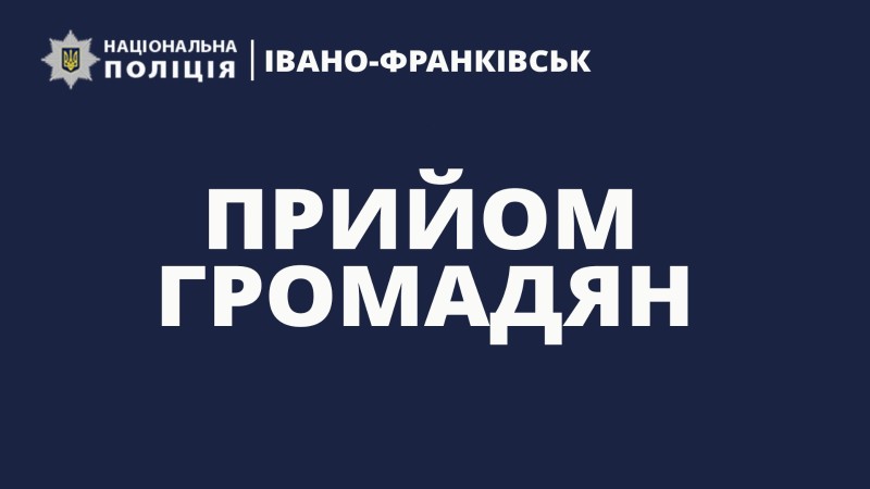 Прийом громадян буде здійснювати начальник відділу головної інспекції ГУНП в Івано-Франківській області підполковник поліції Берладін Сергій Васильович та старший інспектор з особливих доручень відділу уповноважених з контролю за дотриманням прав людини в поліцейській діяльності (з дислокацією в Івано-Франківській області), управління дотримання прав людини Департаменту головної інспекції та дотримання прав людини Національної поліції України старший лейтенант поліції Кравецька Марія Василівна.