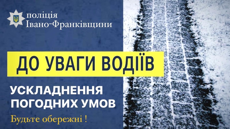 З ускладненням погодних умов поліція Івано-Франківщини звертається до водіїв та пішоходів із проханням бути максимально уважними та обережними, а також: