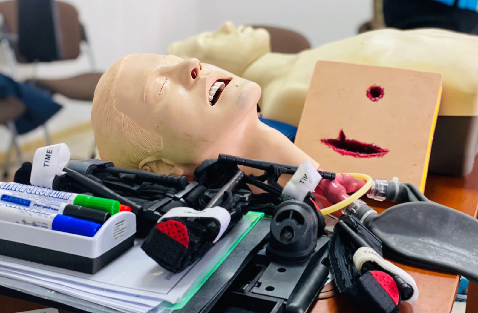 Упродовж дня правоохоронці освоювали практичні уміння з домедичної допомоги потерпілим. Поліцейські відпрацювали алгоритми зупинки кровотечі та серцево-легеневу реанімацію з апаратом зовнішньої