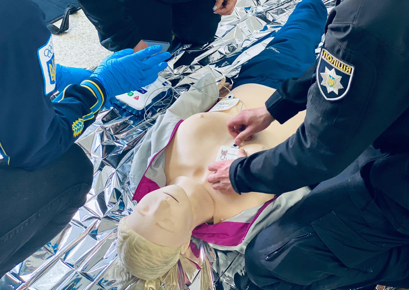 дефібриляції, транспортування потерпілих за допомогою нош, евакуація з місця події тощо. Звернули увагу правоохоронців також на власній безпеці.