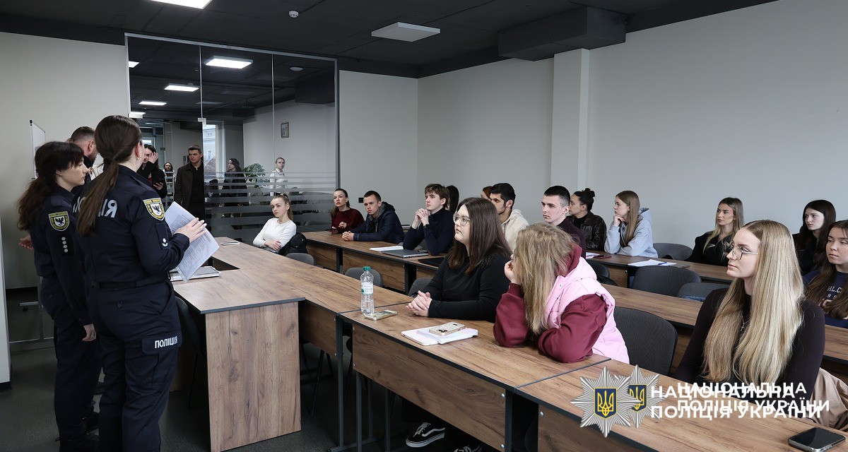 Досвід служби і вимоги до професії: поліцейські Івано-Франківського РУП провели для студентів профорієнтаційне заняття