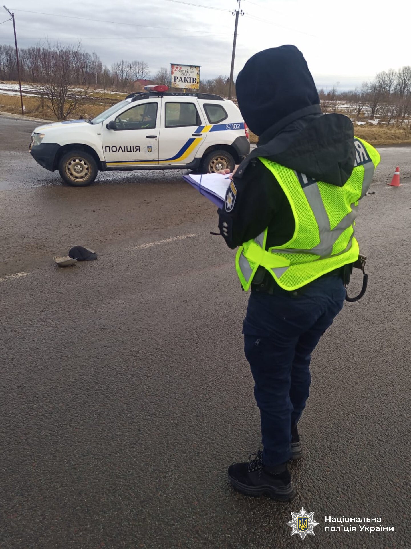 23 лютого о 06:35 до поліції надійшло повідомлення про дорожньо-транспортну пригоду в селі Раків Калуського району. Унаслідок наїзду автомобіля пішохід загинув на місці події. Слідчі працюють на місці та встановлюють усі обставини аварії.