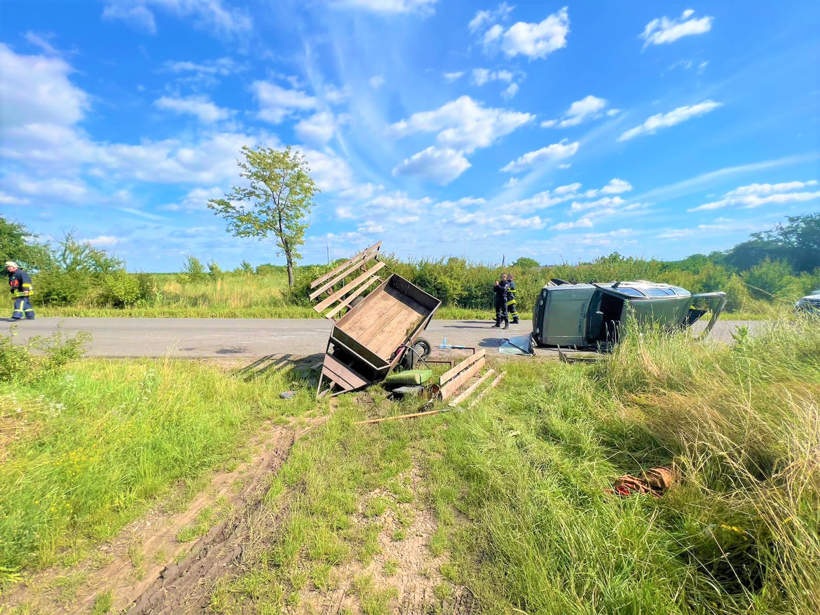 Правоохоронці встановили, що 74-річний водій іномарки «Фольксваген Гольф», який рухався в напрямку с. Зібранівка, проявив неуважність під час обгону мотоблока з причепом та допустив зіткнення з причепом. Після цього автомобіль занесло і він зіткнувся з автомобілем «Мерседес Спринтер», яким керував 34 - річний чоловік. У результаті аварії особи, які їхали на мотоблоці, 59-річний чоловік та 58-річна жінка, отримали тілесні ушкодження та доставлені до місцевої лікарні. Водіїв перевірили на стан сп’яніння, вони були тверезими.