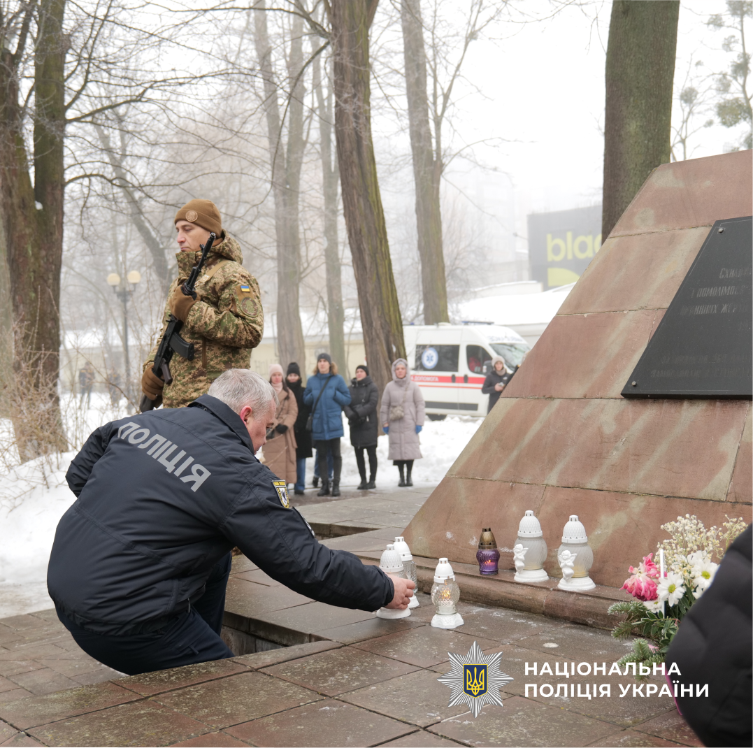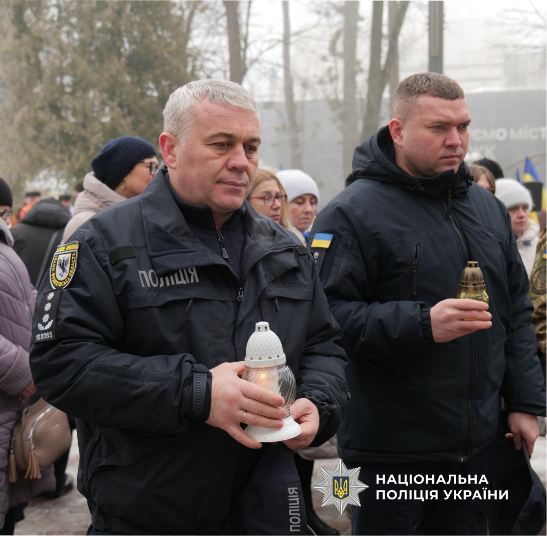 До пам’ятного заходу долучилося керівництво обласної поліції разом із представниками місцевої влади, громадськості, військовими, духовенством та представниками силових структур.
