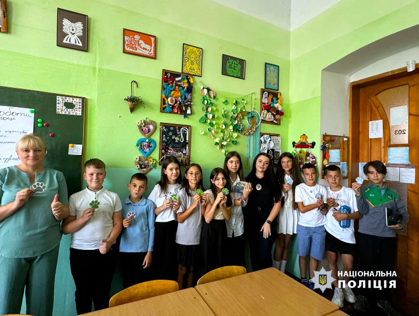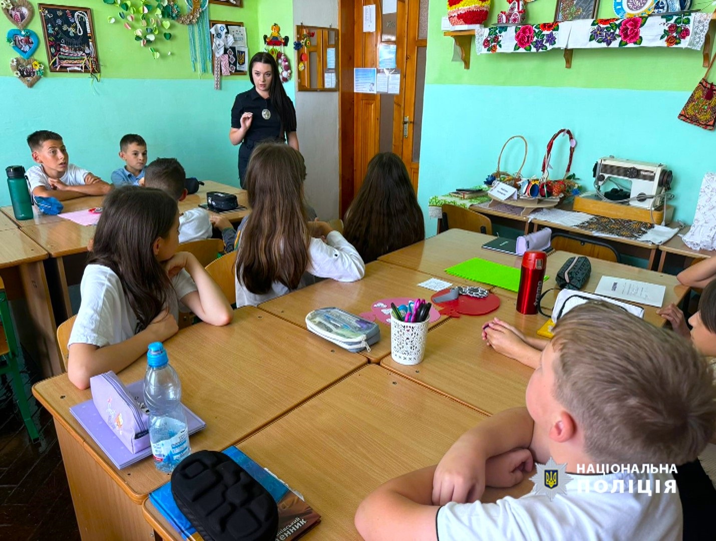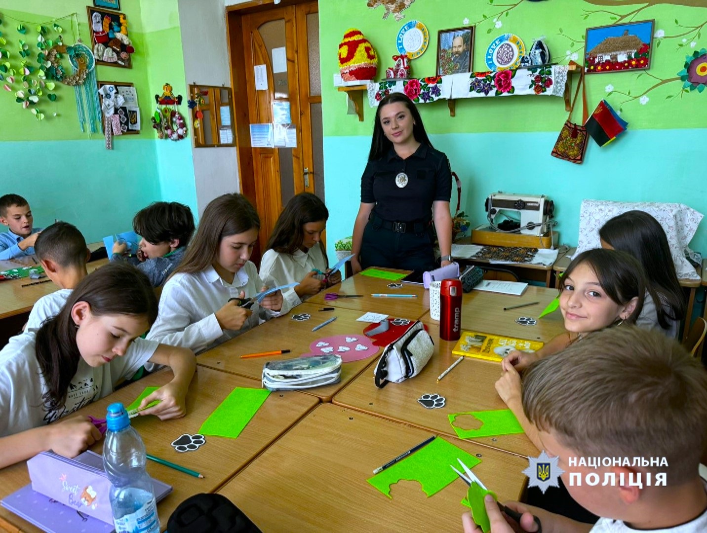 Окрім того, діти мали змогу поговорити з поліцейською про безпечну поведінку на дорозі та роботу поліції. Надалі, інспекторка розповіла школярам основні правила поведінки під час надзвичайних ситуацій, нагадали послідовність дій під час сигналу "Повітряна тривога".