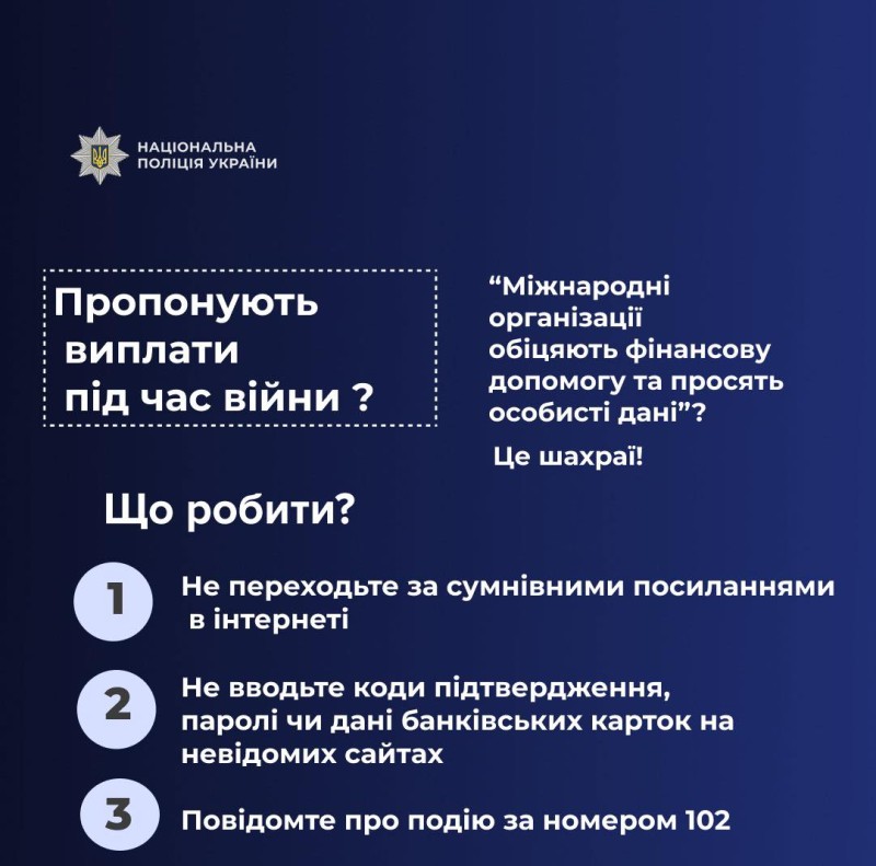 - офіційні виплати здійснюються лише через державні сервіси — завжди перевіряйте інформацію на офіційних сайтах.