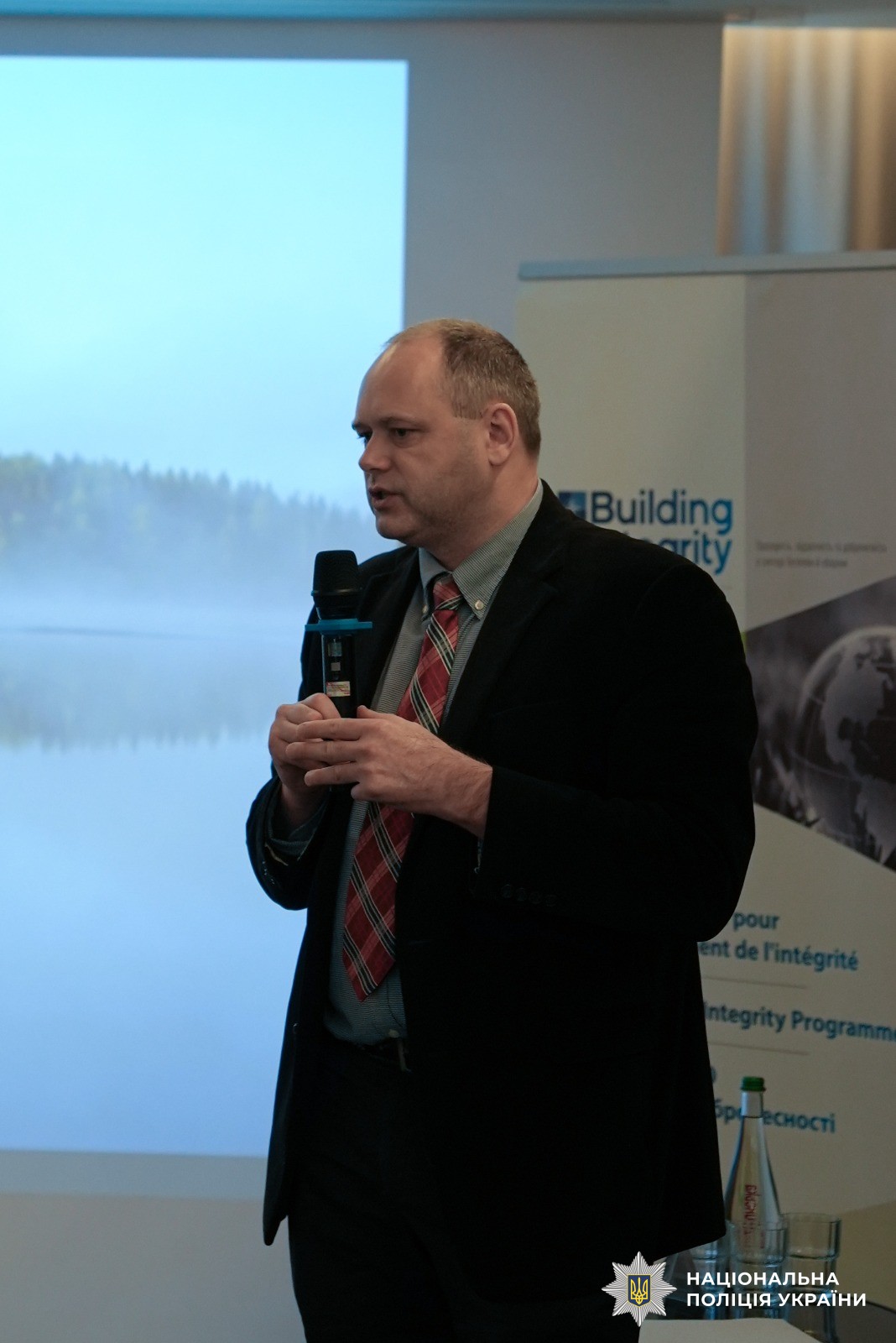 З вітальними словами до учасників звернулися начальник Управління запобігання корупції Національної поліції України Ігор Звездін, заступник Голови НАЗК Сергій Гупяк, керівник Програми НАТО з виховання доброчесності Йоакім Френдін та Головний менеджер програми DCAF в Україні Гражвідас Ясутіс.