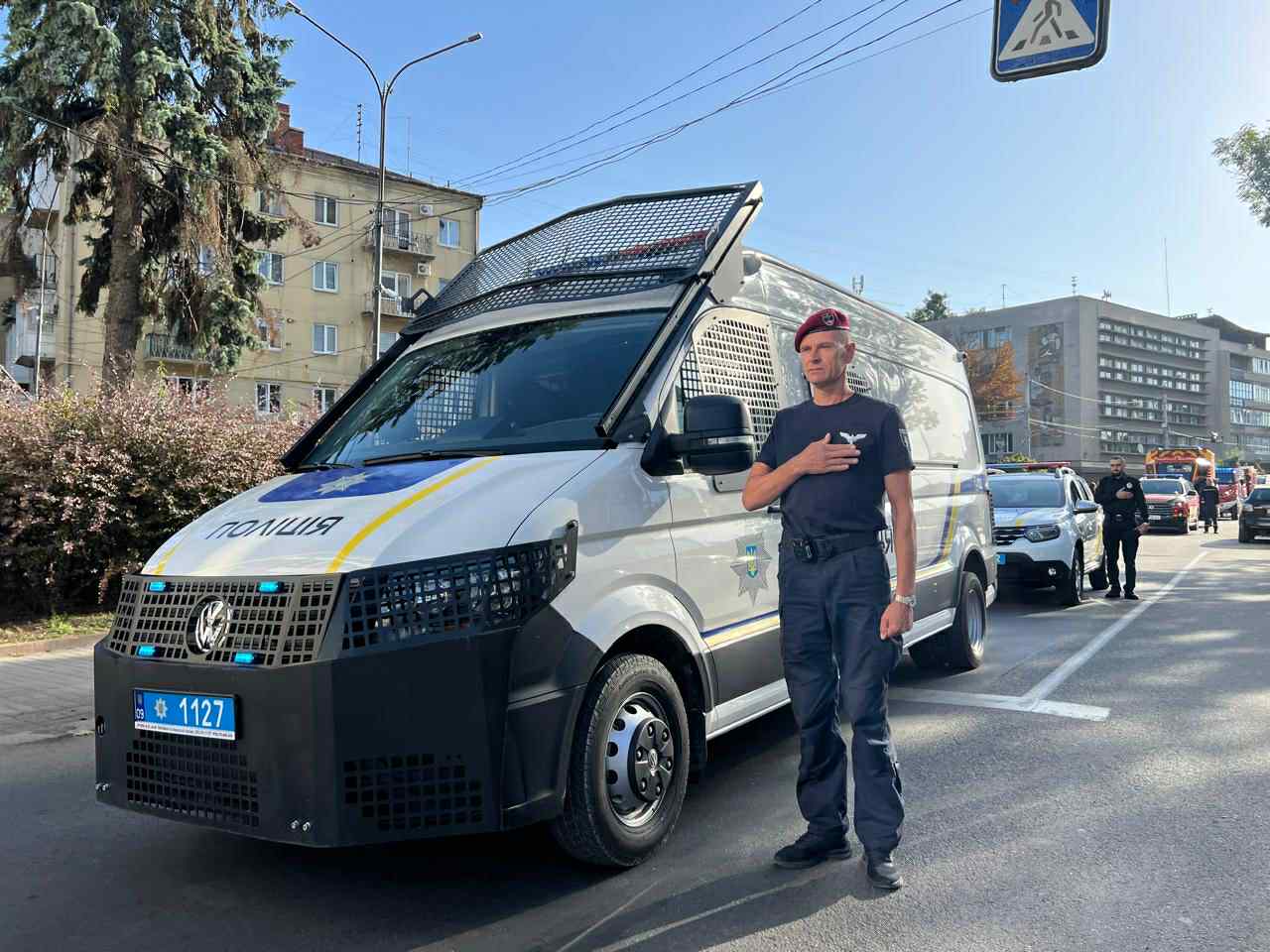 На центральній вулиці обласного центру проїхала спецтехніка обласної поліції поліції, Національної гвардії, ДСНС та інших міжвідомчих підрозділів МВС. Перехожі та водії зупинилися, аби разом із правоохоронцями вшанувати Героїв.