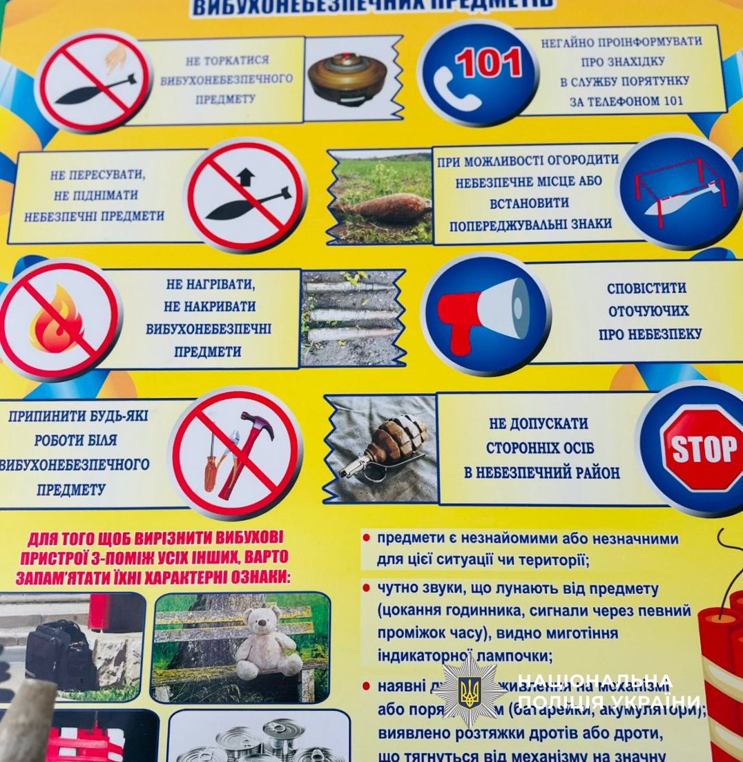 Молодь разом з працівниками поліції опрацювали алгоритм дій у разі виявлення вибухонебезпечних предметів та закріпили базові знання з мінної безпеки.