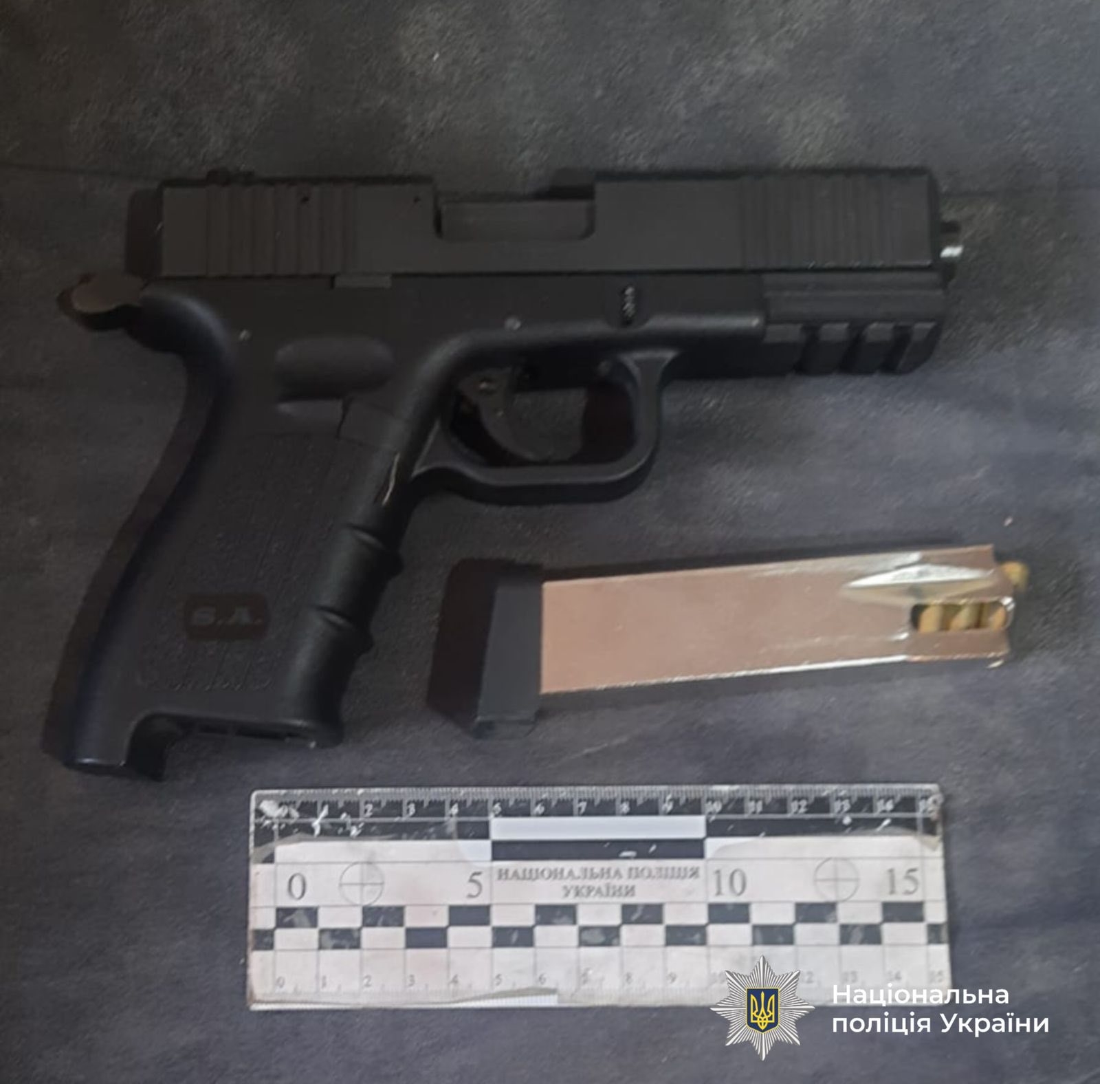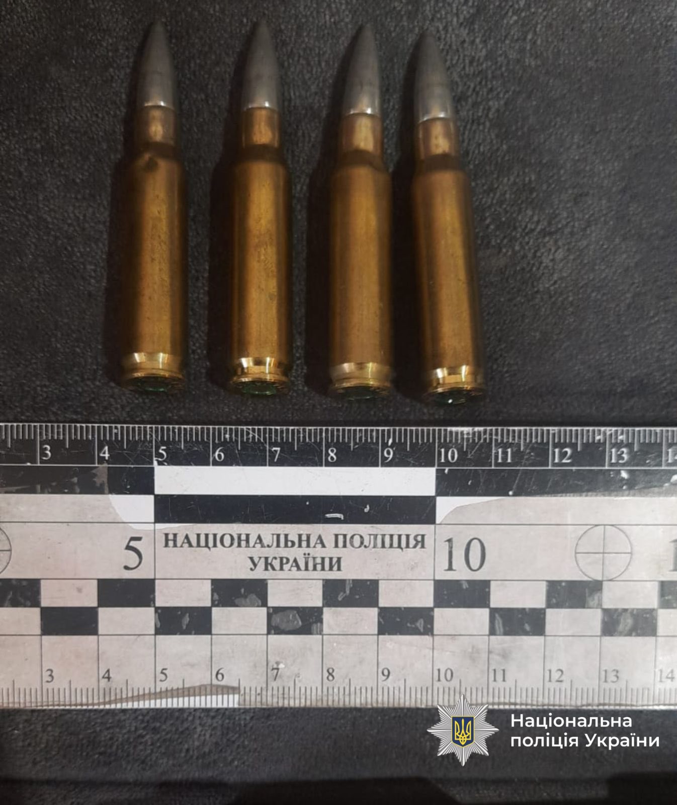 Під час проведення обшуку за місцем проживання затриманого поліцейські вилучили травматичний пістолет із магазином, майже 50 набоїв різного калібру, боєприпас до кулемета, гладкоствольну мисливську рушницю.
