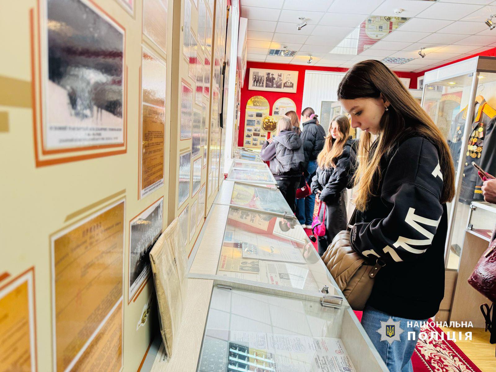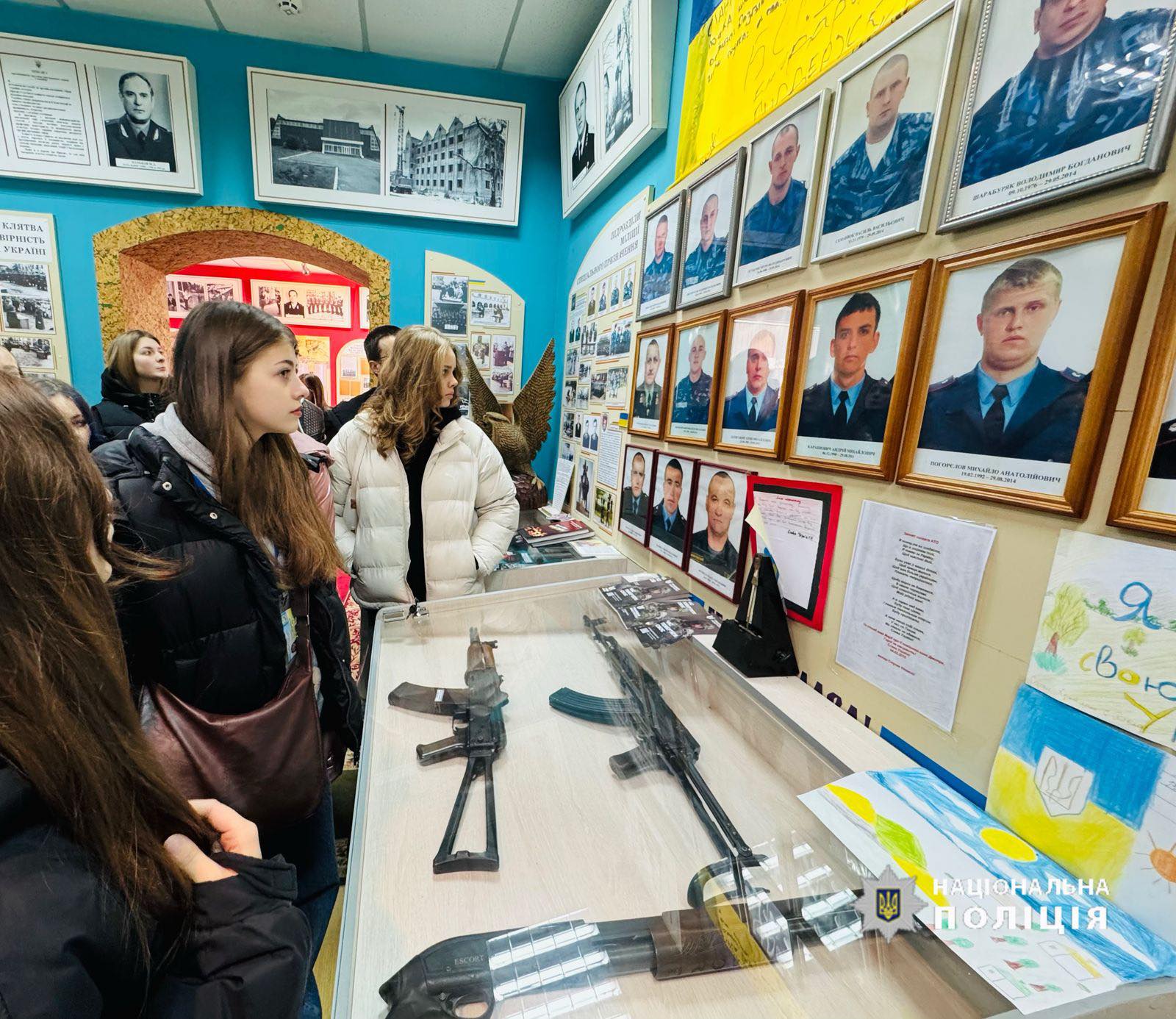 Студенти також ознайомились з експонатами колекції холодної та вогнепальної зброї, вилученої у злочинців, підроблених грошей та документів, інструментів за допомогою яких вони виготовлялися, речовими доказами, а також унікальною колекцією медалей та форменого одягу правоохоронців.