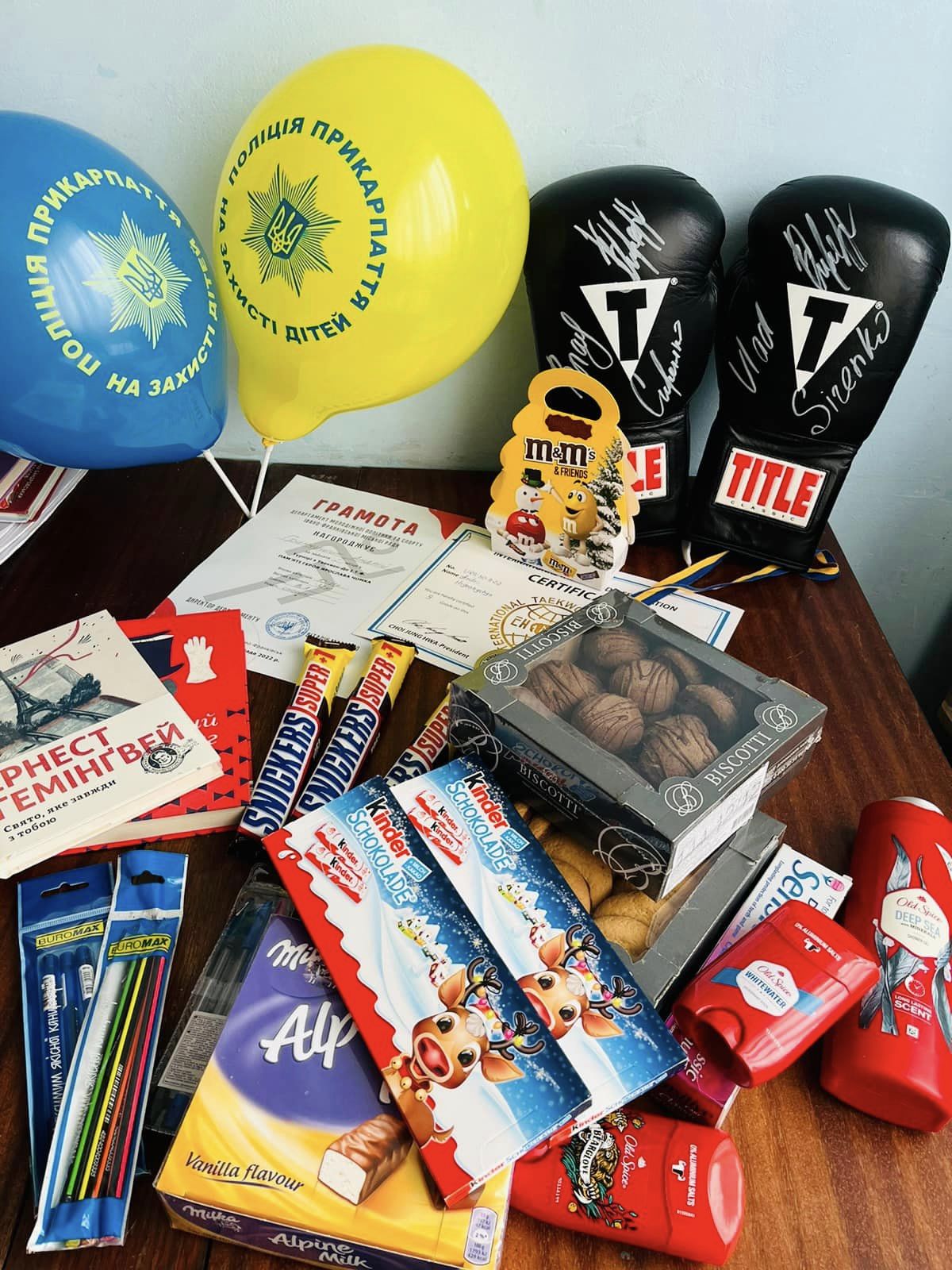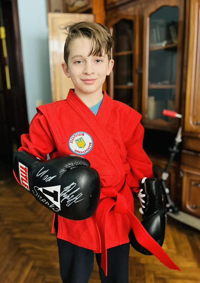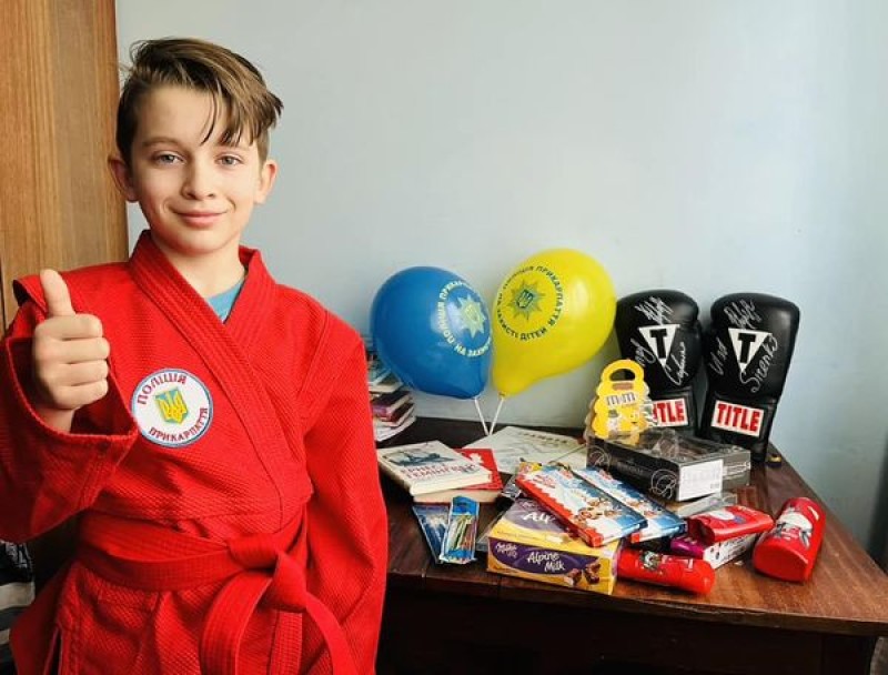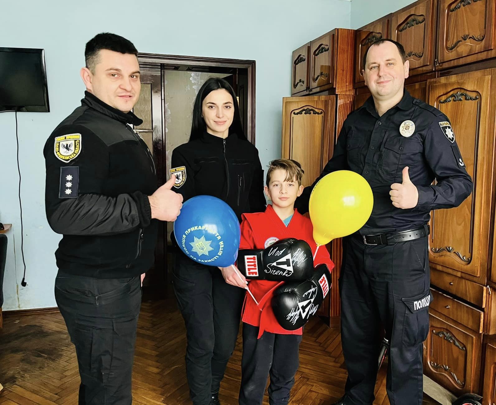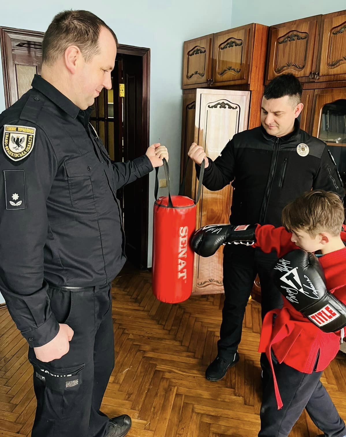 Хлопчик захоплюється спортом, тому мріяв про боксерські рукавиці та кімоно. Тепер у нього є рукавиці з підписом українського професійного боксера Владислава Сіренка та кімоно від ювенальних поліцейських. Хлопчик дуже зрадів подарункам.