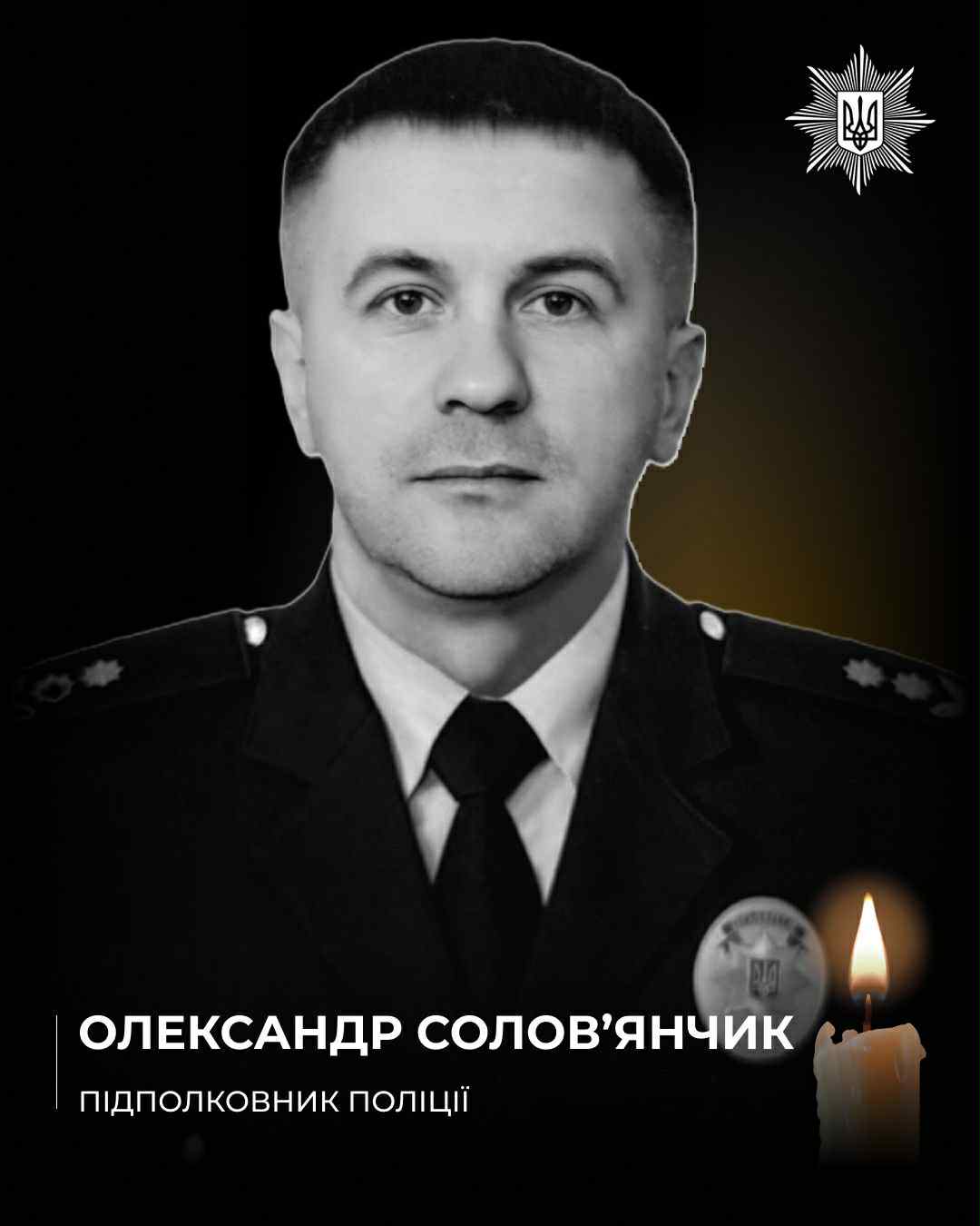 -підполковник поліції Олександр Соловʼянчик, 1987 р.н. З 2015 року служив у Національній поліції України. Був слідчим та опероуповноваженим у різних підрозділах поліції. А торік перевівся на посаду старшого інспектора відділення проведення спеціальних операцій батальйону поліції особливого призначення.