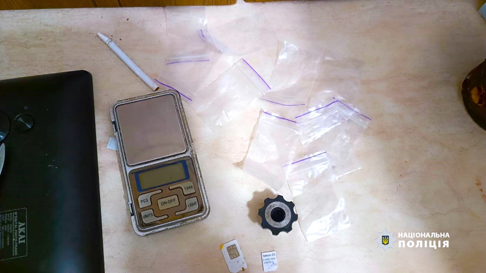 Під час обшуку у помешканні наркозбувачки поліцейські вилучили зіп-пакети з порошкоподібною речовиною рослинного походження, наркотичні засоби, засоби пакування, електронні ваги, банківські картки, кошти, отриманні злочинним шляхом.