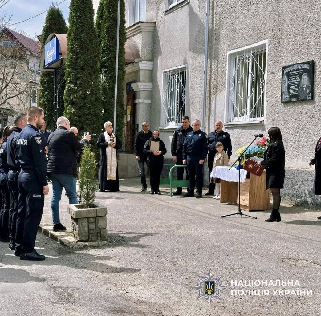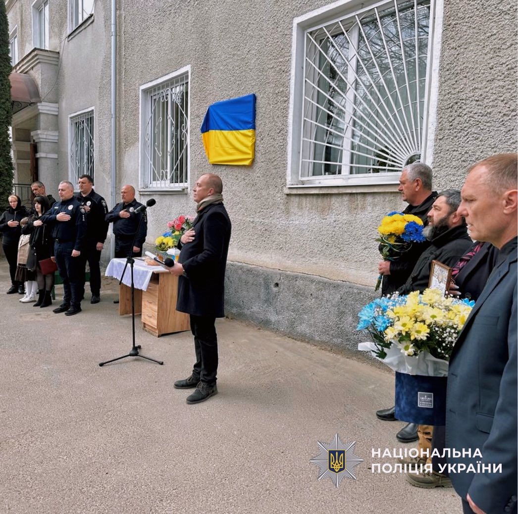 Меморіальну дошку встановили на будівлі Косівського районного відділу поліції Головне управління Національної поліції в Івано-Франківській області — підрозділу, де він проходив службу на посаді оперуповноваженого. Відтепер його ім’я назавжди залишатиметься символом честі, відваги та відданості для колег і майбутніх поколінь правоохоронців. Почесне право відкрити меморіальну дошку надали дружині Героя Ярославі та доньці Євгенії.