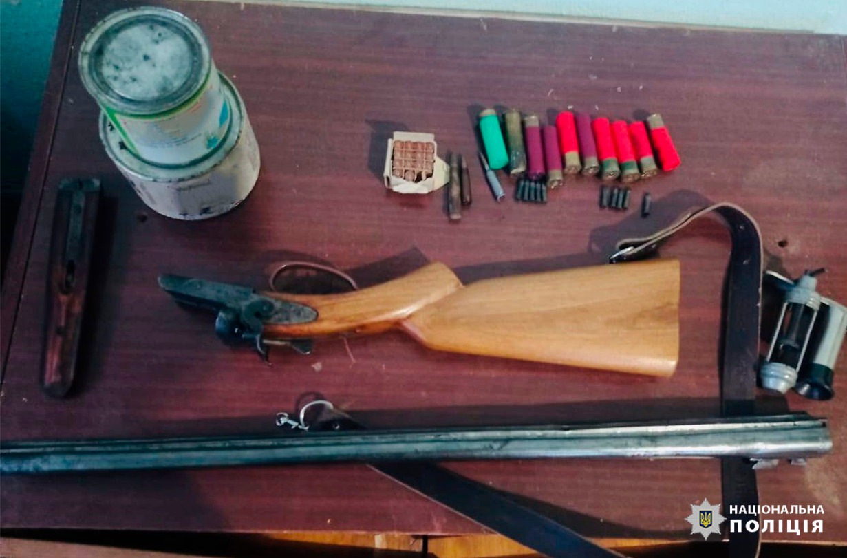 Під час опрацювання виклику щодо вчинення домашнього насильства, співробітники поліції виявили у будинку 57-річного кривдника ряд заборонених предметів. Серед них: гладкоствольна мисливська рушниця, 10 боєприпасів до малокаліберної гвинтівки, 10 заряджених пиж-контейнерів до гладкоствольної мисливської зброї, 14 боєприпасів до пістолета "Макарова", 3 боєприпаси до автоматичної вогнепальної зброї, пристрій для спорядження пиж-контейнерів, банки із порохом.