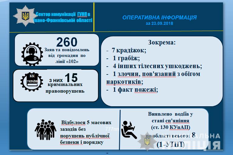 Оперативна інформація за минулий тиждень з 17.09.2018 по 23.09.2018