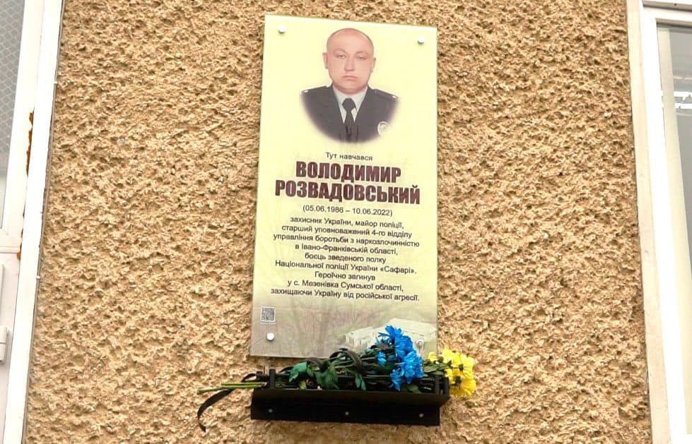 грудня на території Хімчинського ліцею «Інтелект» відбувся захід з нагоди відкриття пам'ятної дошки загиблому – старшому оперуповноваженому управління боротьби з наркозлочинністю в Івано-Франківській області Департаменту боротьби з наркозлочинністю Національної поліції України майору поліції Володимиру Розвадовському.