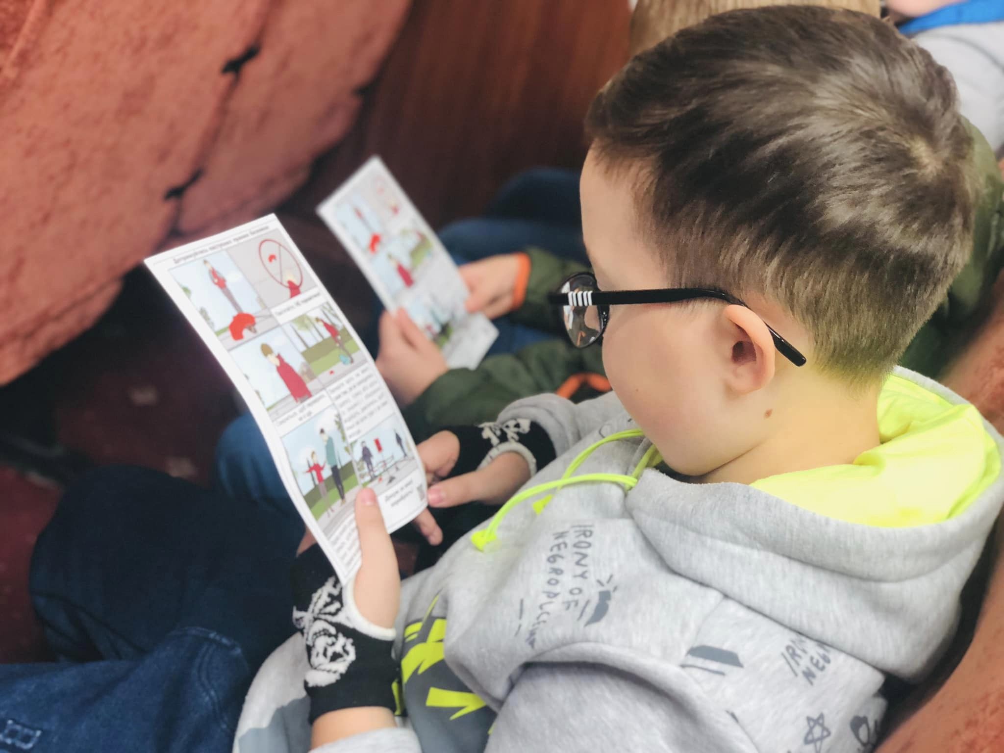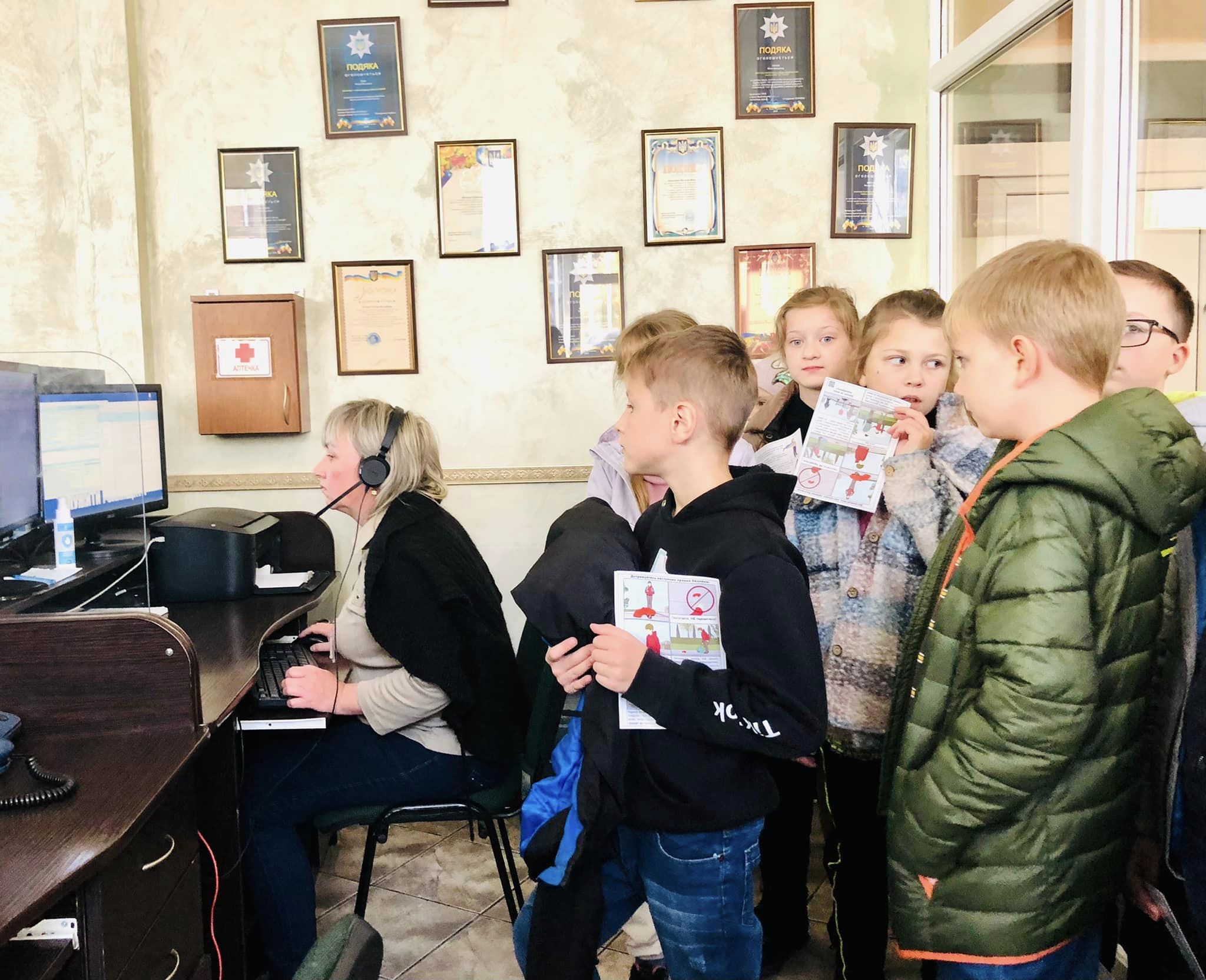 Малеча побажала правоохоронцям вдалого робочого дня. А самі ж поспішили на безпековий урок. Тут школярам ювенали розповіли, як поводитись під час повітряної тривоги та що робити, якщо побачили підозрілий предмет на вулиці. Також їм роздали пізнавальні буклети, в яких описано як залишатися в безпеці під час воєнного стану.