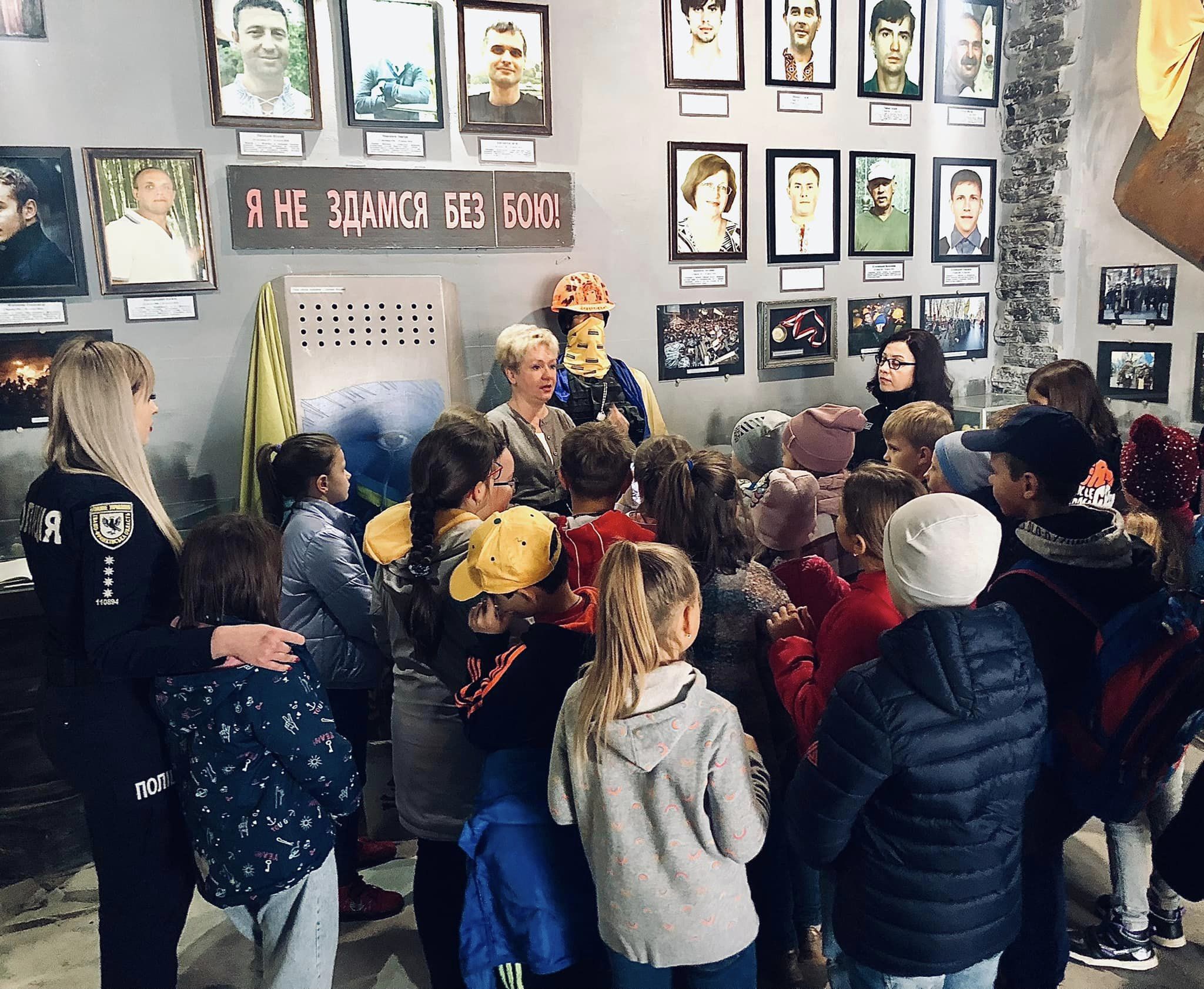 Патріотичний урок відбувся з нагоди Дня захисників та захисниць України. Кілька десятків школярів, у супроводі поліцейських ювенальної превенції, навідались спершу до Музею Небесної Сотні. Учням дуже сподобалась екскурсія. Після цікавої екскурсії, дітки вирушили до обласної поліції, де їм продемонстрували роботу чергової частини. Школярі були вражені оперативністю поліцейських та кількістю звернень громадян, які вони щохвилини опрацьовують. Також учні мали змогу й самотужки прийняти дзвінок. Звісно, умовний.
