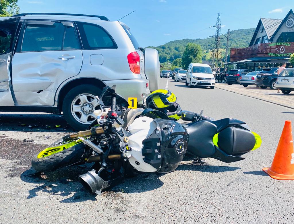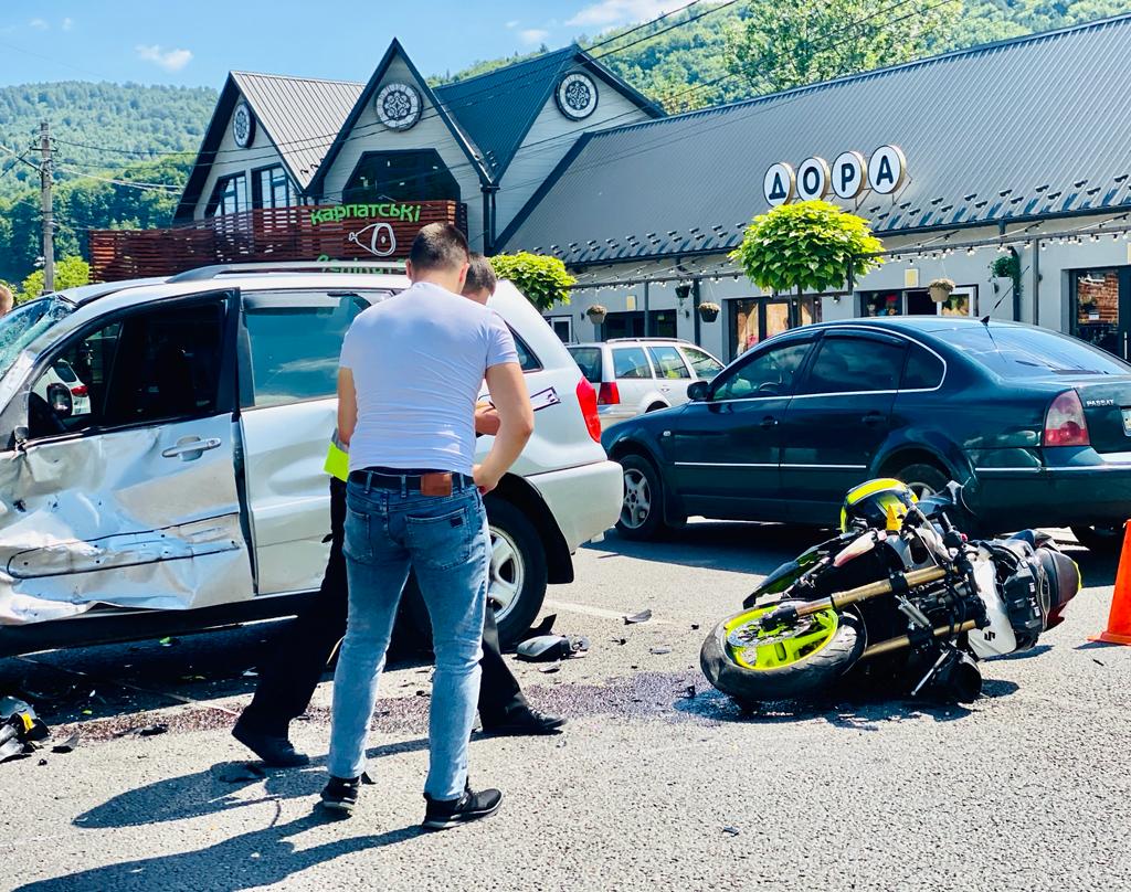 Наступна ДТП трапилась цього ж дня, у Яремчі. 43-річний водій автомобіля «Тойота Рав4», мешканець Запоріжжя, здійснюючи розворот, проявив неуважність та не надав переваги в русі мотоциклу. Останній рухався в напрямку міста Надвірна.