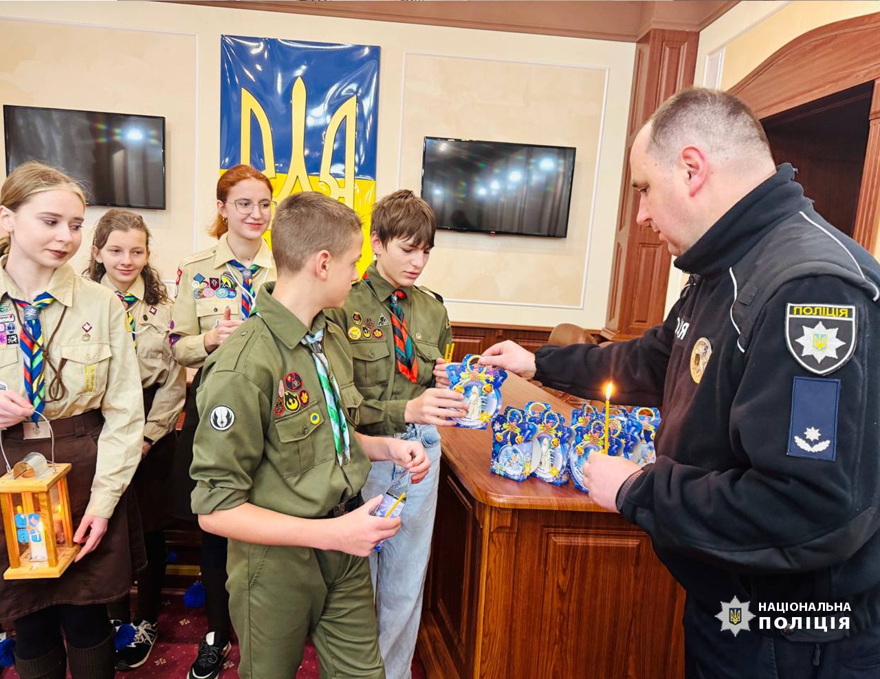 «Дякуємо, що підтримуєте світлу традицію Вифлеємського вогню. Щороку від принесеної вами свічки запалюються мільйони інших свічок, символізуючи при цьому сяйво миру та добра»,– сказали ювенальні поліцейські.