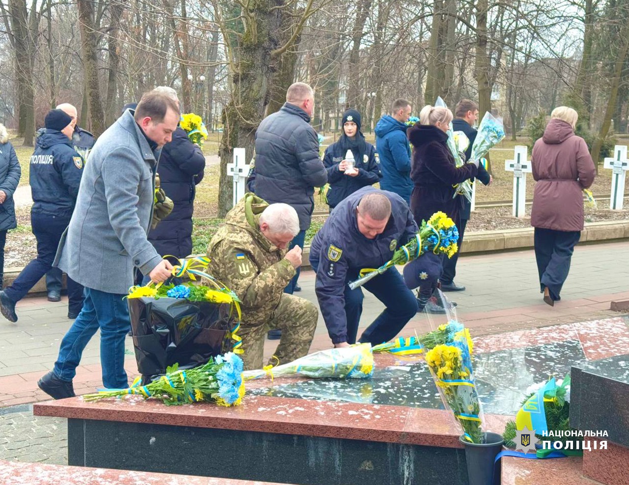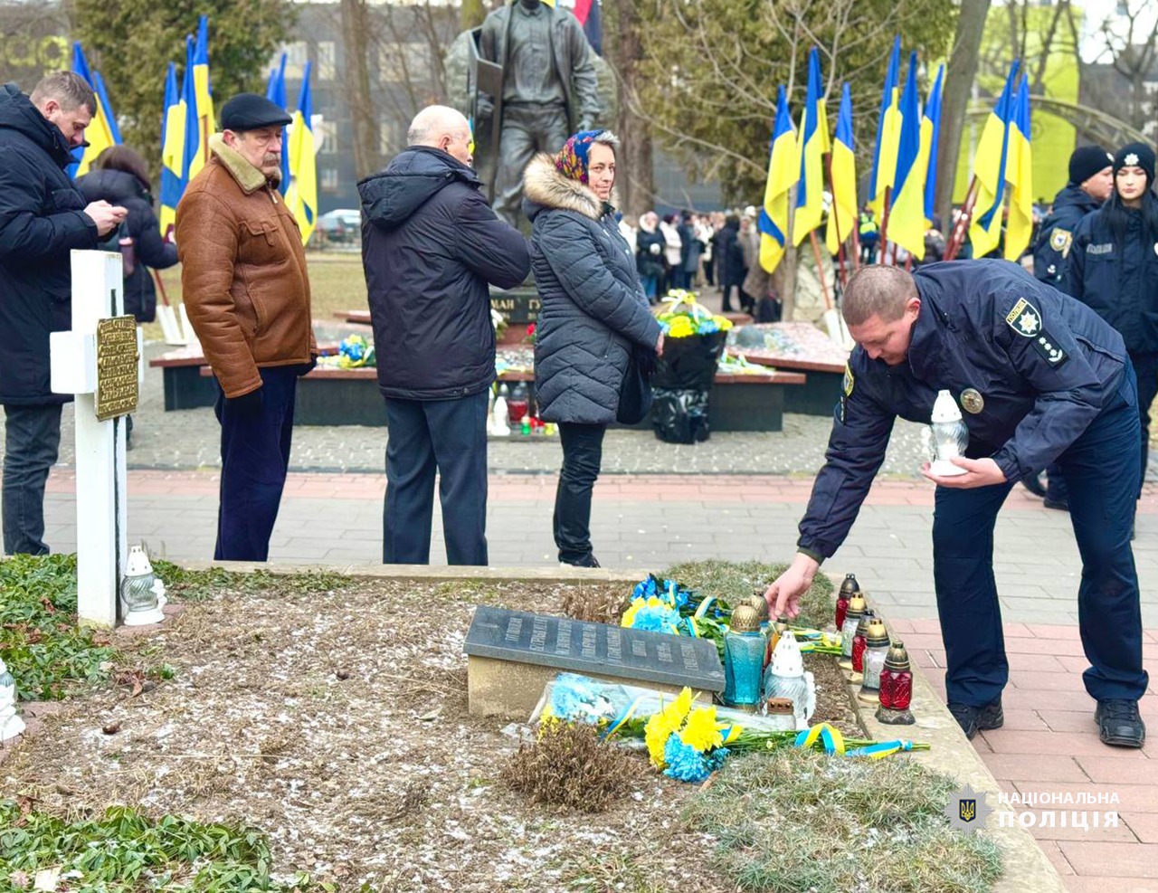 Поліцейські разом із представниками місцевої влади та громадськості поклали квіти, запалили лампадки та хвилиною мовчання вшанували пам’ять загиблих, які стали символом боротьби українського народу за демократичні цінності та гідне майбутнє.