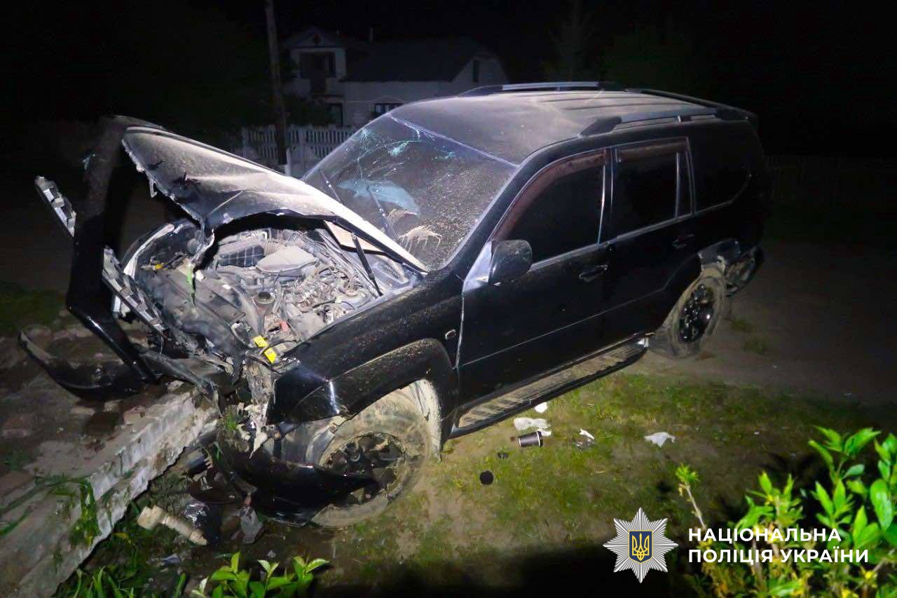 Ще одна аварія сталася 4 травня близько опівночі в селі Липівка, Тисменицької територіальної громади. Виїздом слідчо-оперативної групи на місце події встановлено, що 21-річний франківець, керуючи автомобілем «Toyota Land Cruiser Prado», не обрав безпечної швидкості руху, не врахував дорожню обстановку, не впорався з керування та допустив зіткнення з бетонним заїздом до житлового господарства.