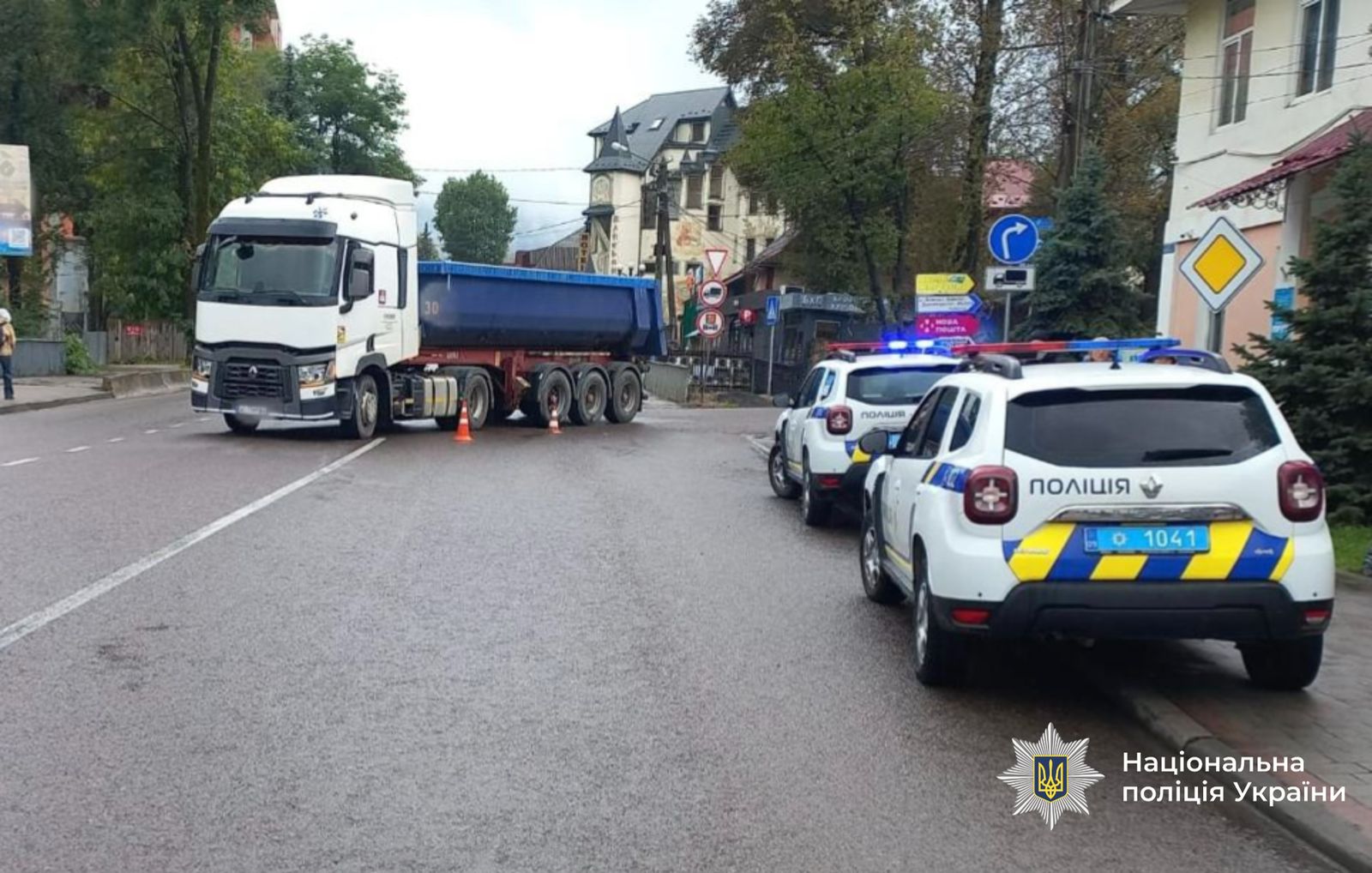 Попередньо правоохоронці встановили, що 68-річний мешканець Надвірнянського району, керуючи вантажним сідловим тягачем «RENAULT», виїжджаючи з другорядної дороги на головну, здійснив наїзд на жінку.