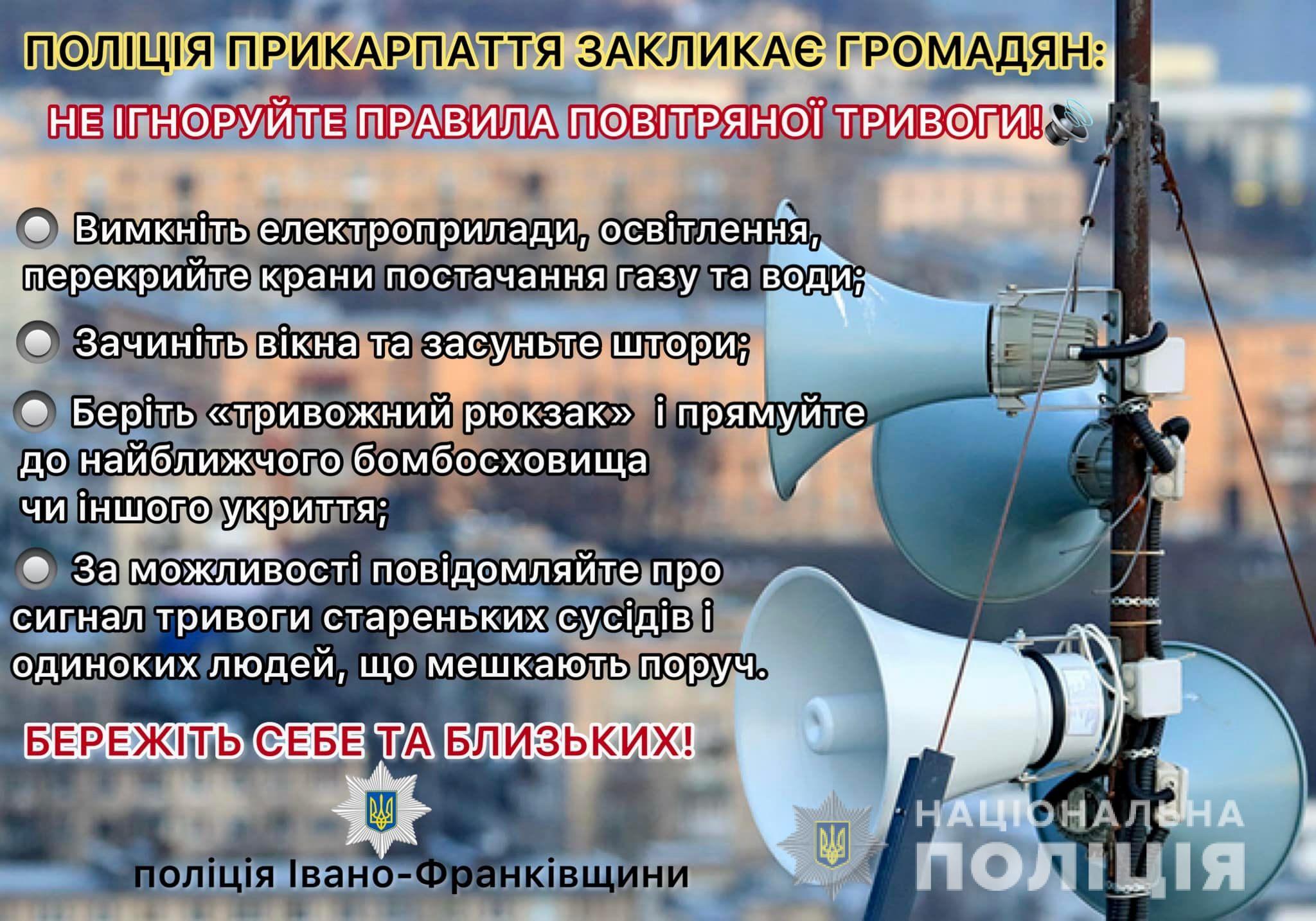 Поліція Прикарпаття закликає громадян не ігнорувати повітряної тривоги