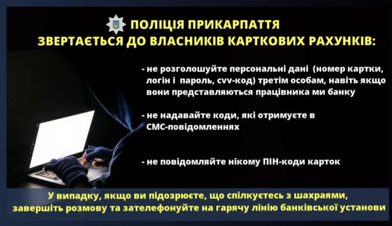 Поліцейські вкотре звертаються до всіх власників карткових рахунків: