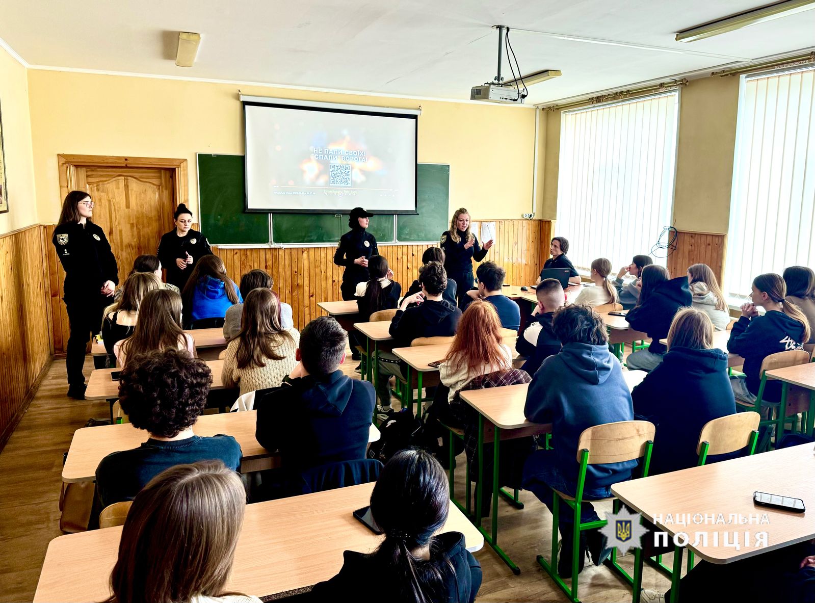 Під час лекції поліцейські продемонстрували старшокласникам соціальний ролик, який розкриває механізми вербування молоді ворожими спецслужбами та демонструє наслідки протиправних та злочинних дій для дітей. Поліцейські обговорили з неповнолітніми методи, які використовують окупанти, та способів протидії їм.
