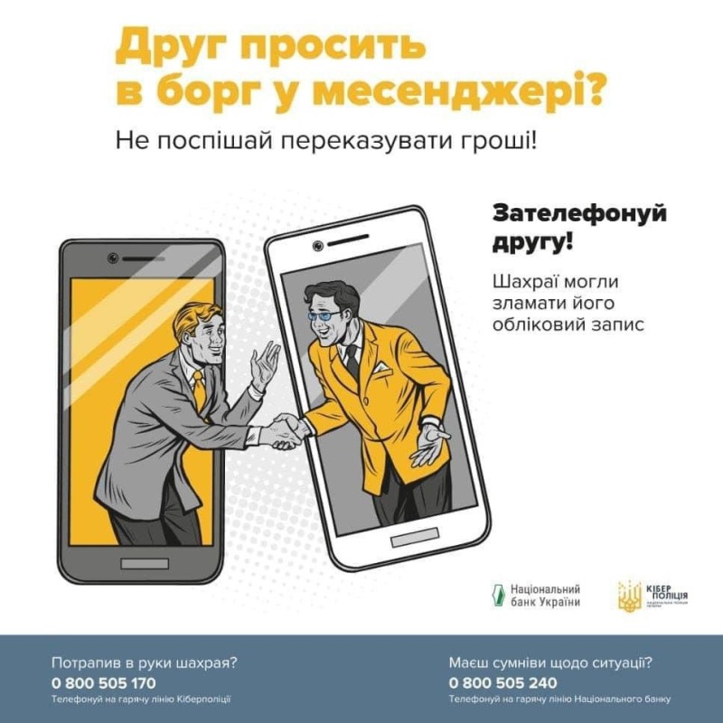 - перевіряти інформацію з проханнями про допомогу, яка може надходити з невідомих номерів, або ж в особисті повідомлення з аккаунтів ваших близьких чи знайомих;