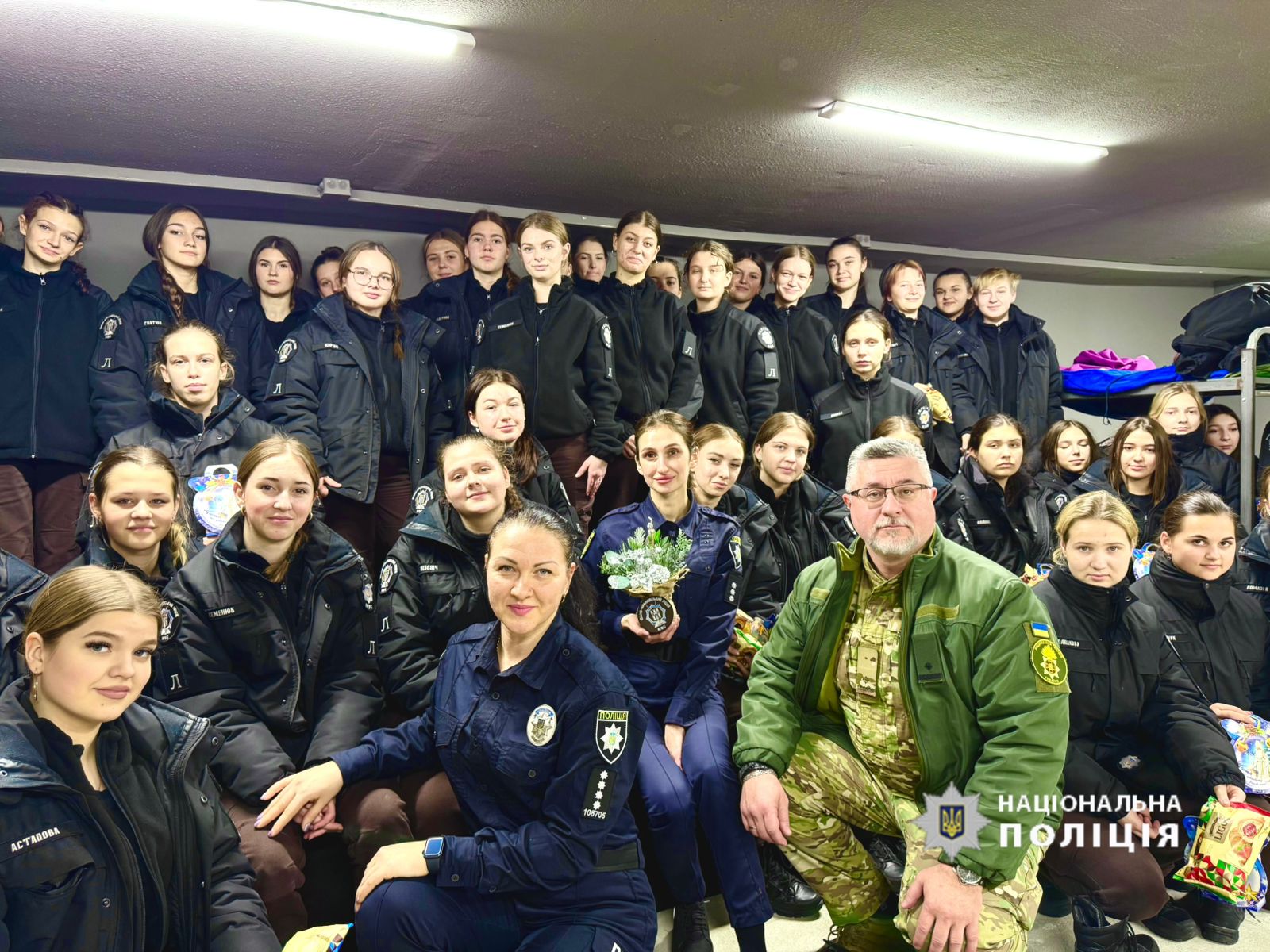 Ліцеїсти профільного ліцею системи МВС отримали від поліцейських подарунки. Через повітряну тривогу дійство довелося перенести до бомбосховища.