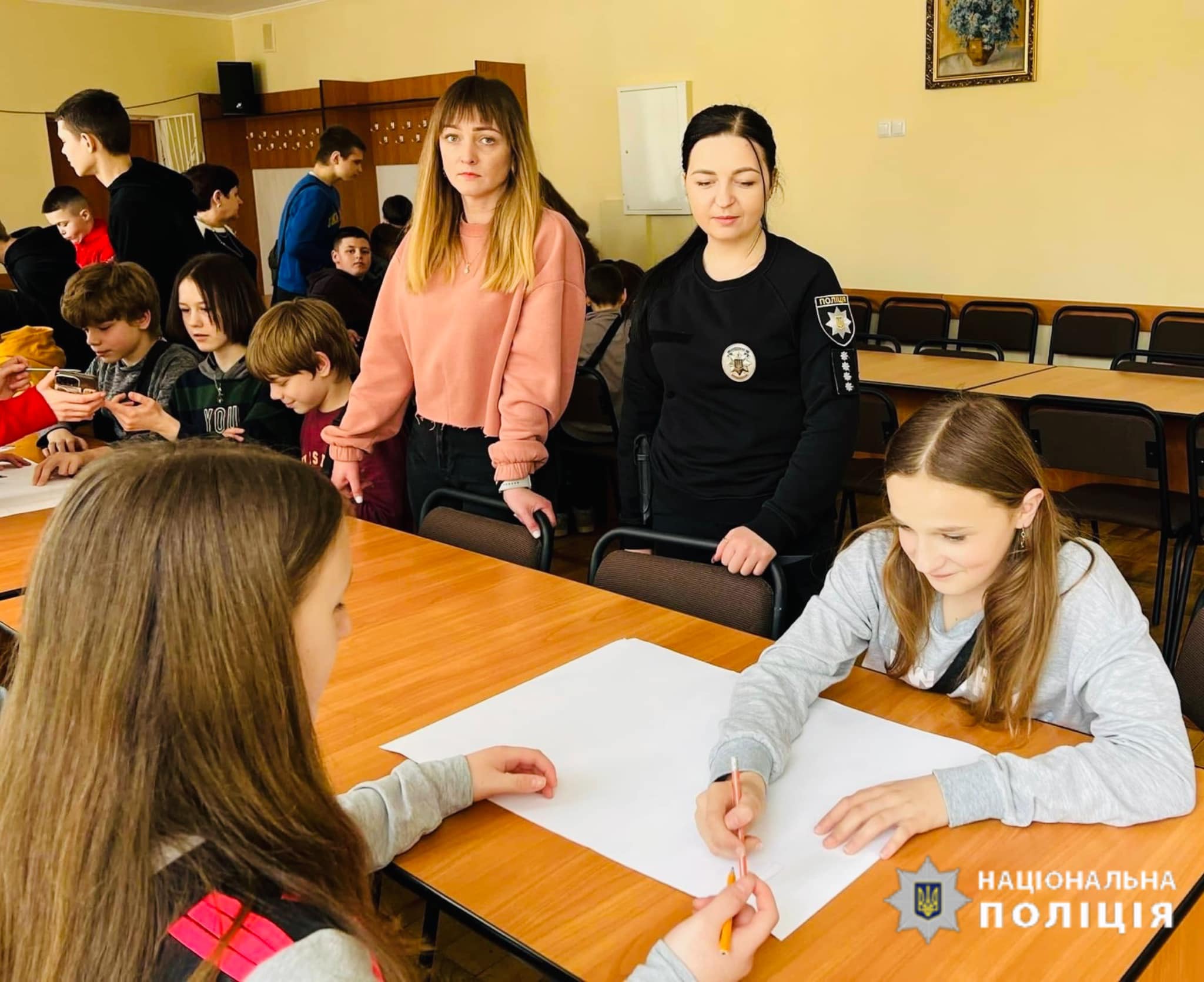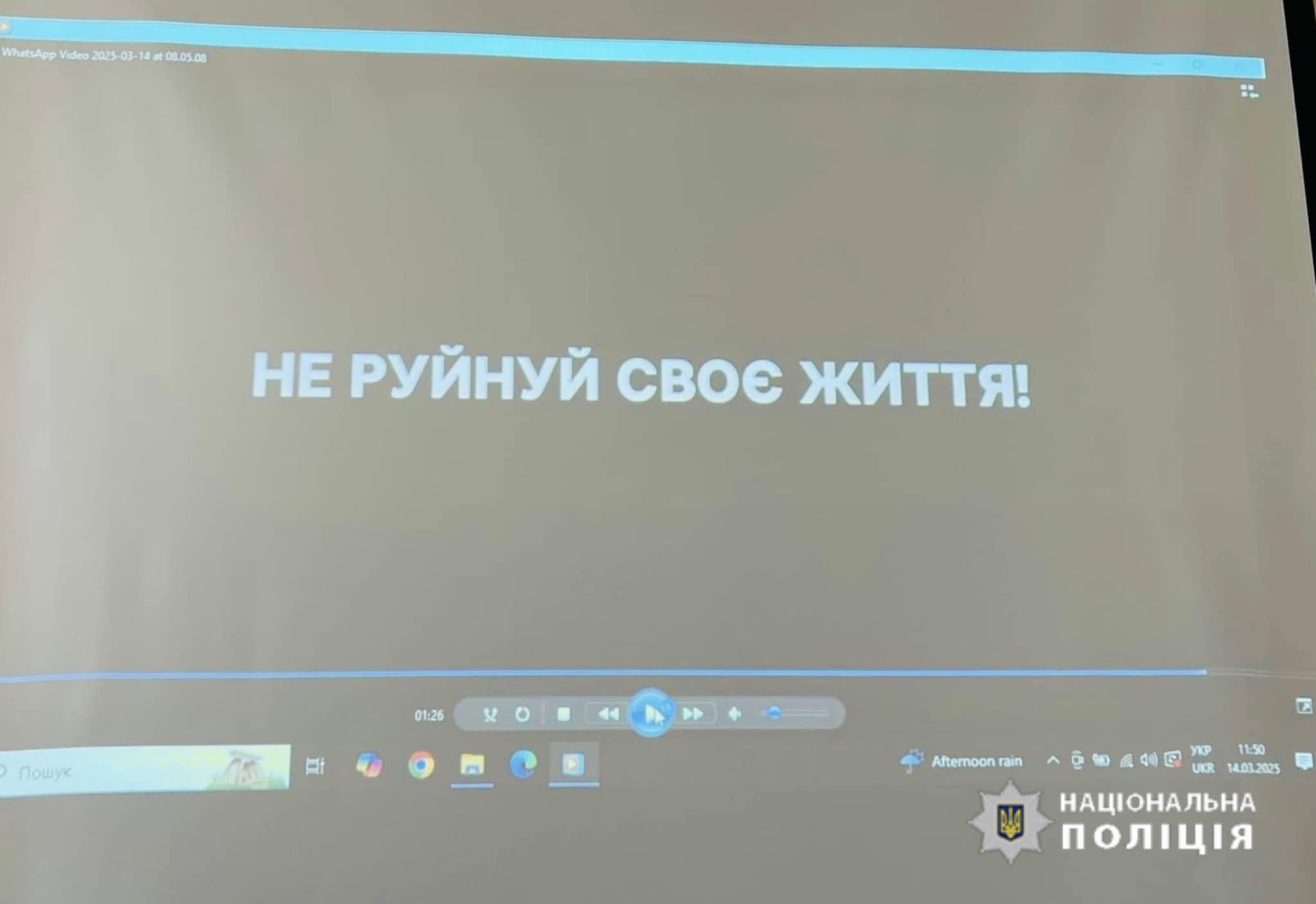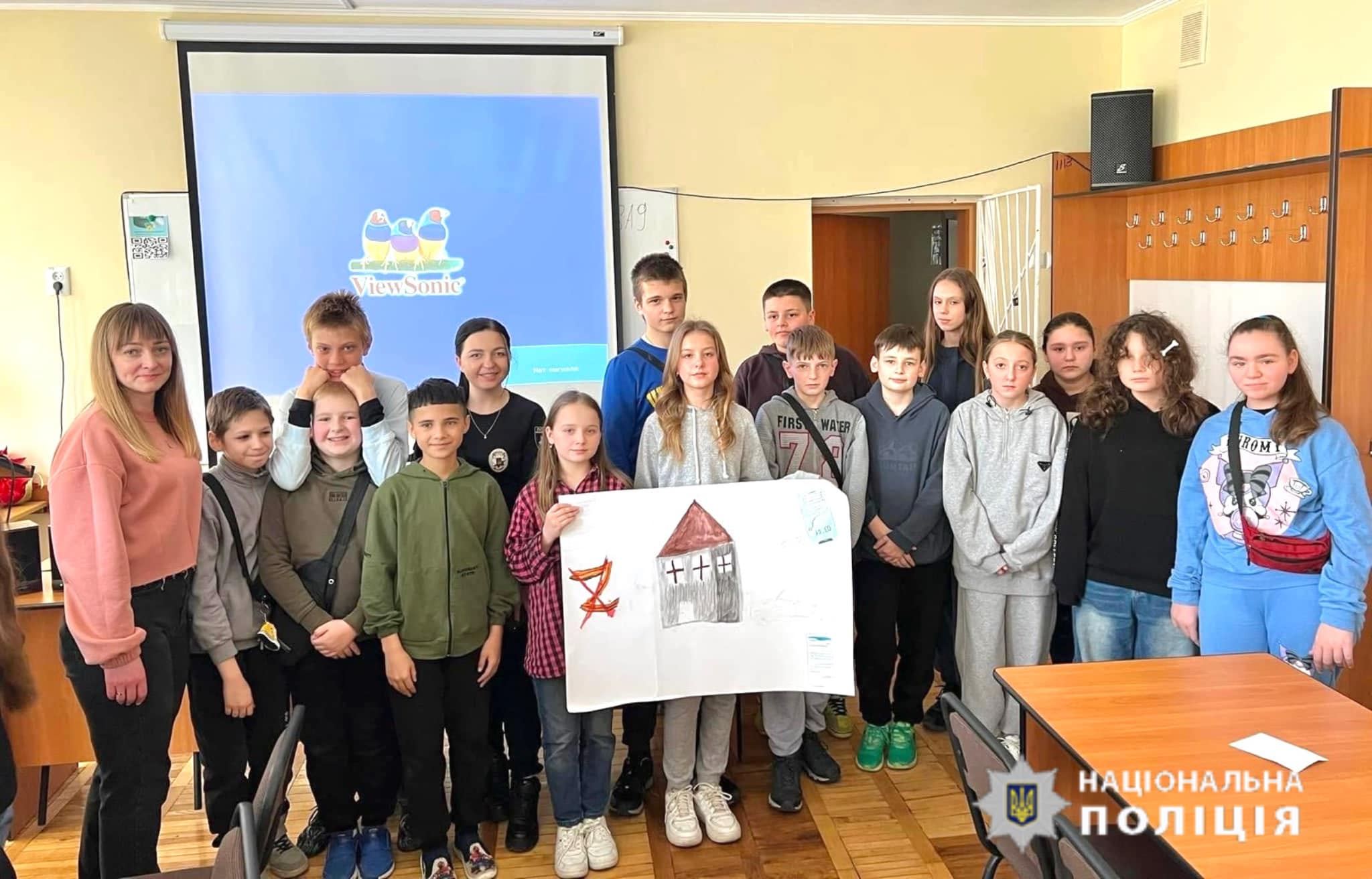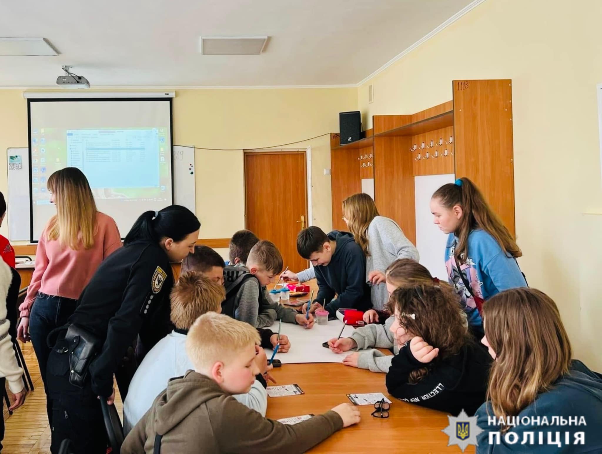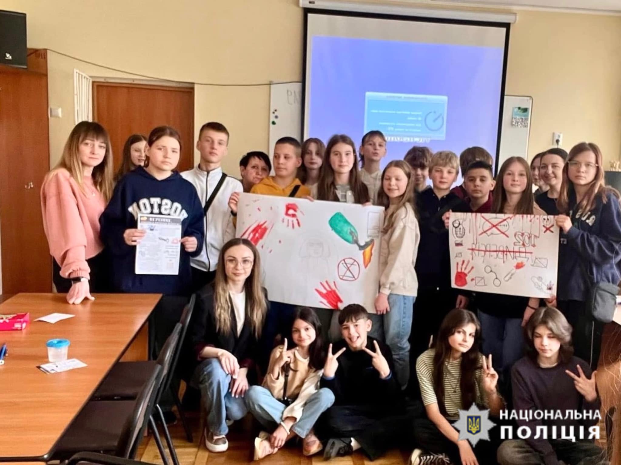 Інтерактивна бесіда спрямована на запобігання втягненню неповнолітніх у злочинну діяльність. Поліцейська розповіла школярам про основні правила кібербезпеки, а також пояснила, як розпізнавати небезпечні ситуації та не ставати