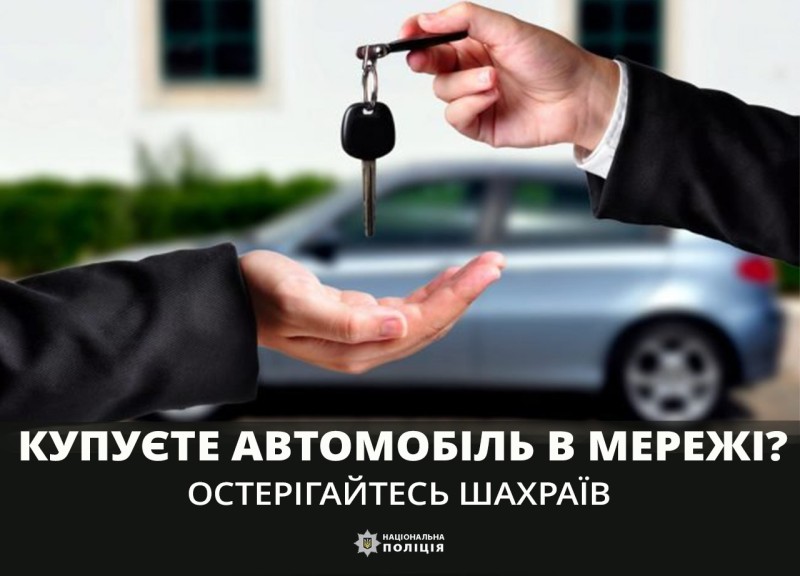 Поліція звертається до громадян, хто збирається придбати чи продати авто, не погоджуйтесь на сумнівні угоди, тим більш в Інтернеті. На таких сайтах аферисти і шукають своїх жертв, розміщуючи неправдиву, але вельми привабливу за ціною інформацію.