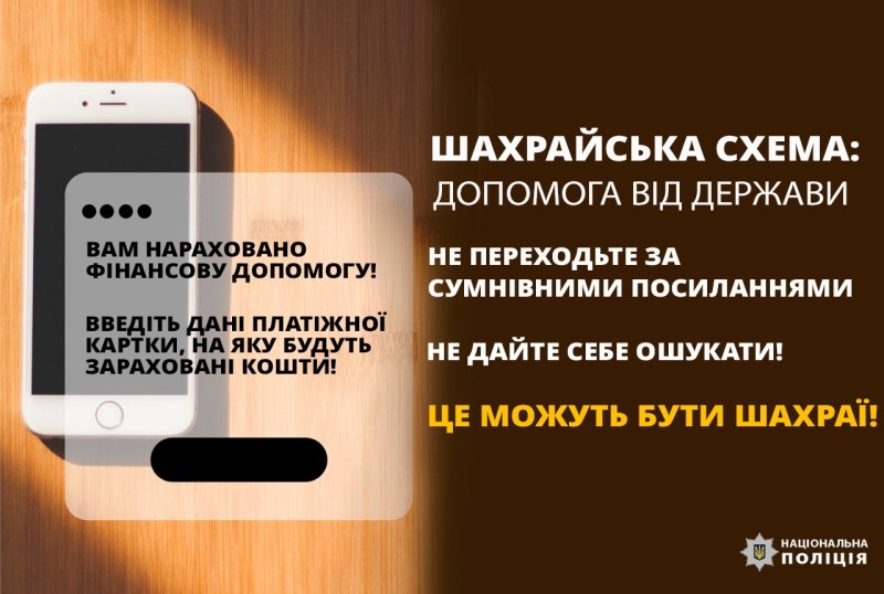 За допомогою до Рожнятівських поліцейських звернулась мешканка громади. Жінка розповіла, що у соціальній мережі натрапила на оголошення про отримання грошової допомоги для українців. Довірлива жінка перейшла за посиланням, ввела персональні та банківські дані платіжної картки. Опісля, їй зателефонував нібито банківський працівник та повідомив, що для зарахування допомоги, необхідно вказати код, який надійшов на телефон. Заявниця виконала всі вказівки афериста.