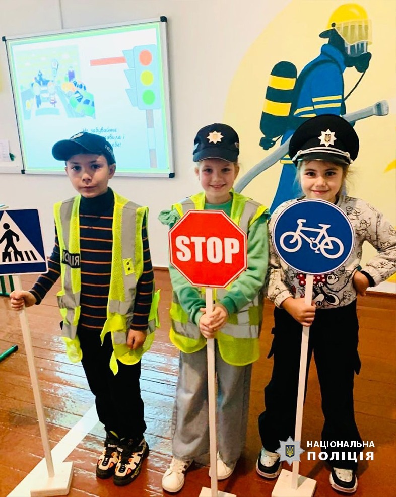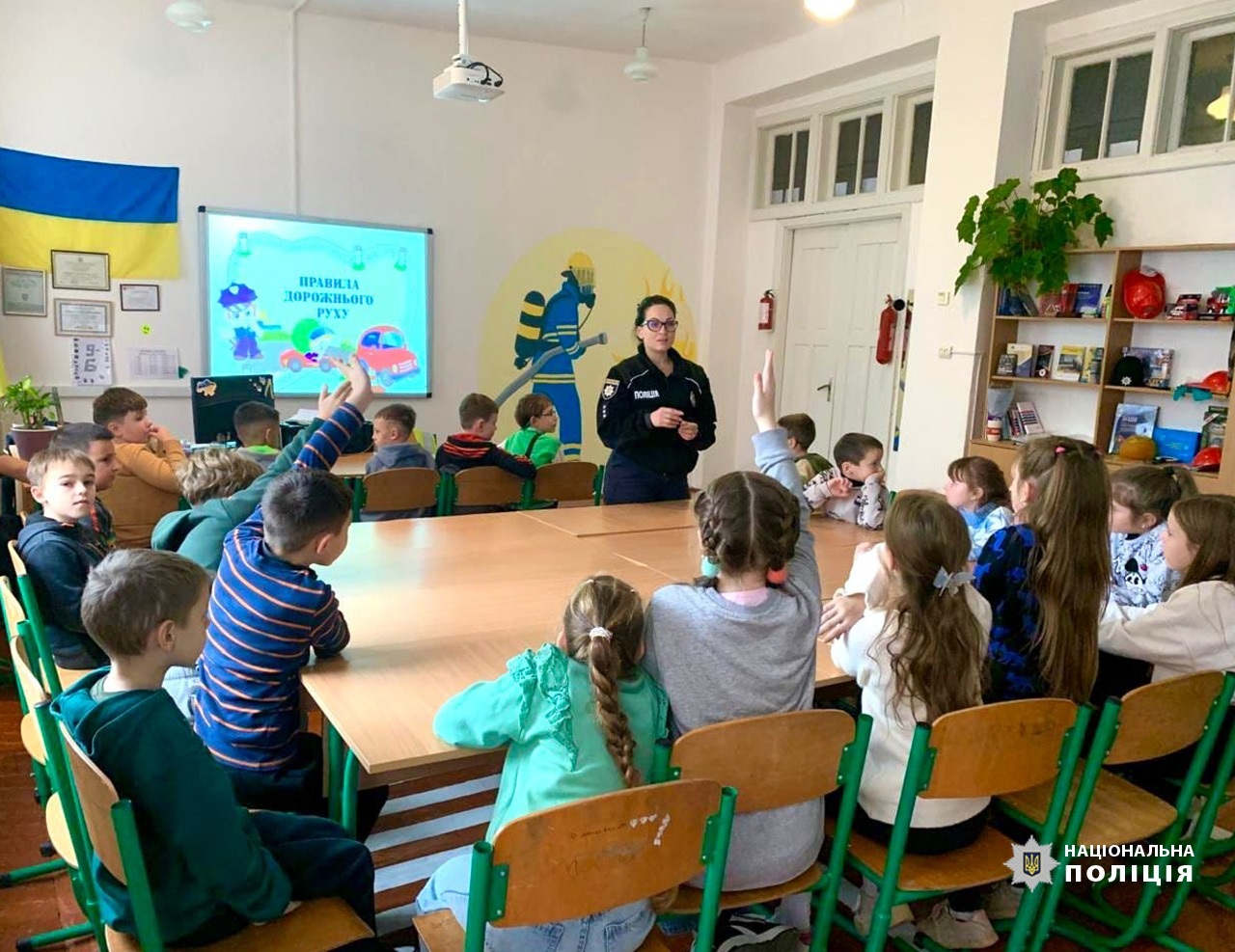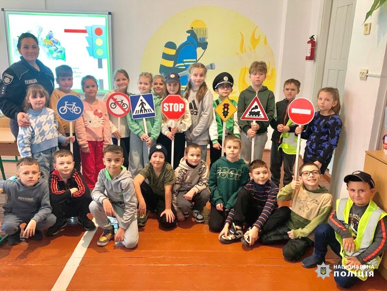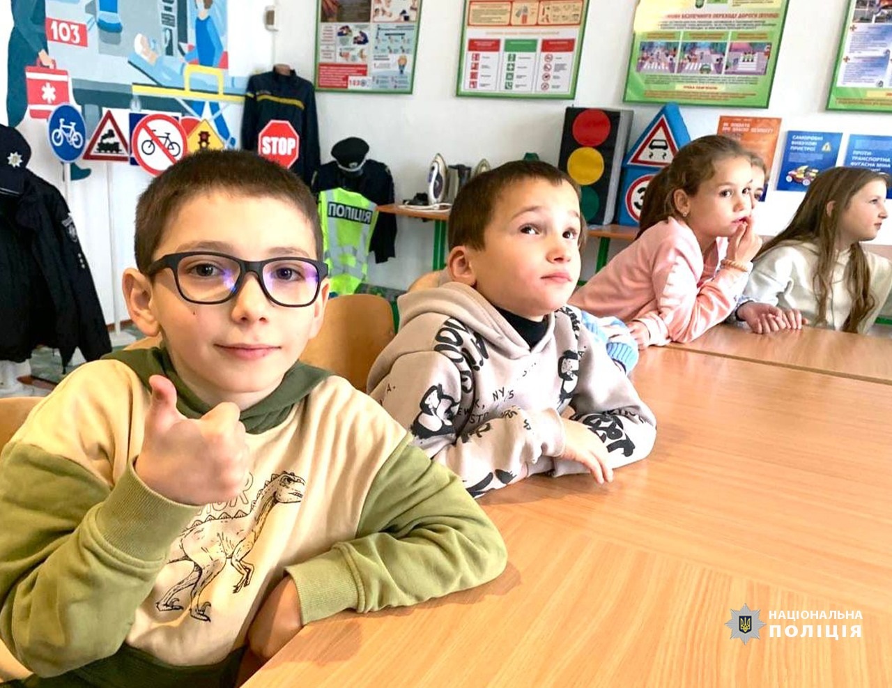 Особливу увагу дітей поліцейська звернула на використання світлоповертаючих елементів у темну пору доби. Поліцейська також роз'яснила правила переходу проїзної частини дороги, познайомила дітей з різними дорожніми знаками та продемонструвала пізнавальне відео з правил поведінки пішоходів, пасажирів та велосипедистів.