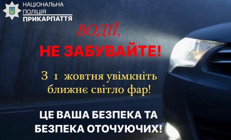 Вимога пов'язана з тим, що світловий день стає коротшим, а осінньо-зимовий період дощів та туманів спричиняє недостатню видимість на дорозі. Тож поліція Прикарпаття закликає водіїв не нехтувати правилами дорожнього руху та бути обережними на дорогах.