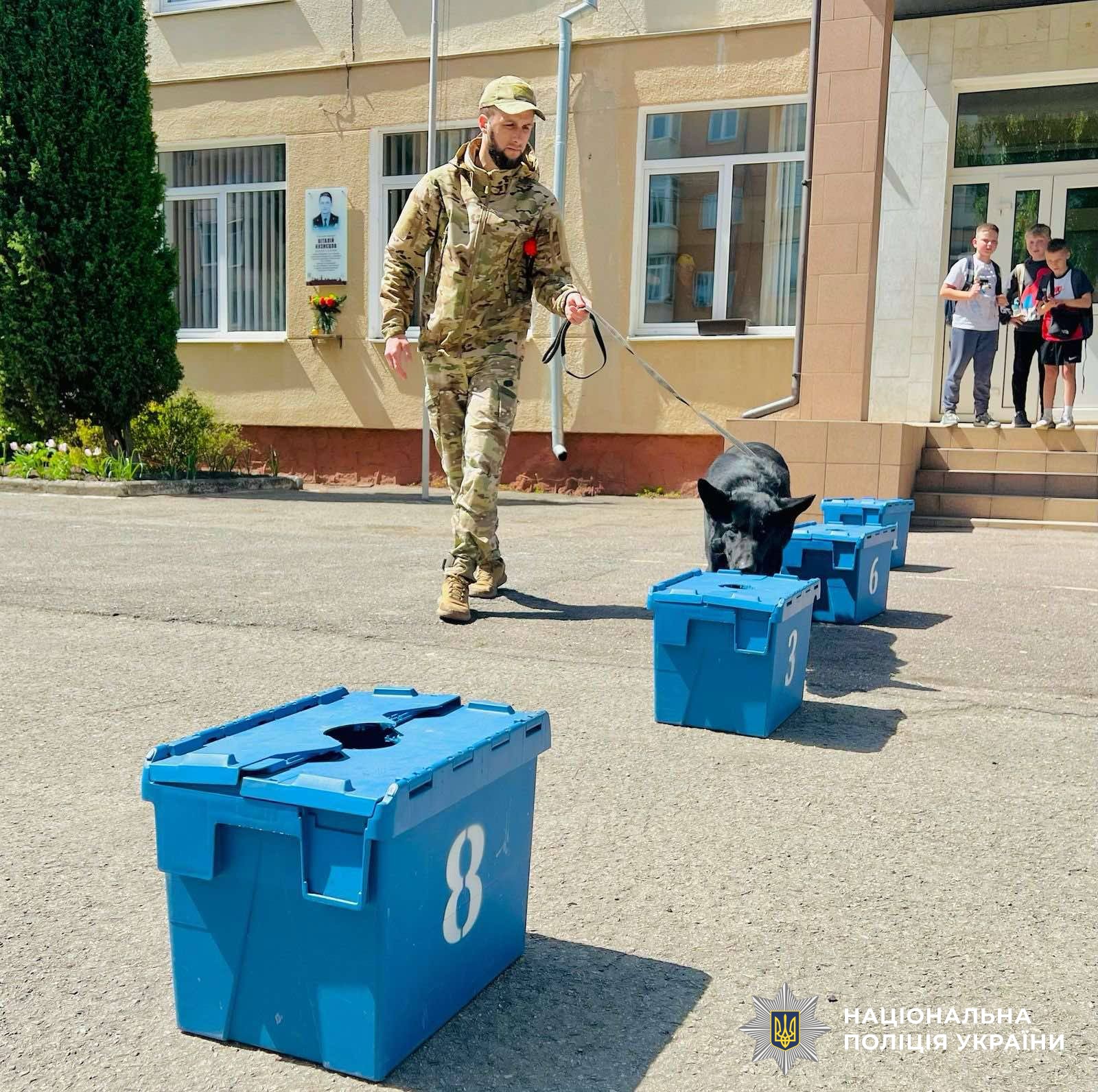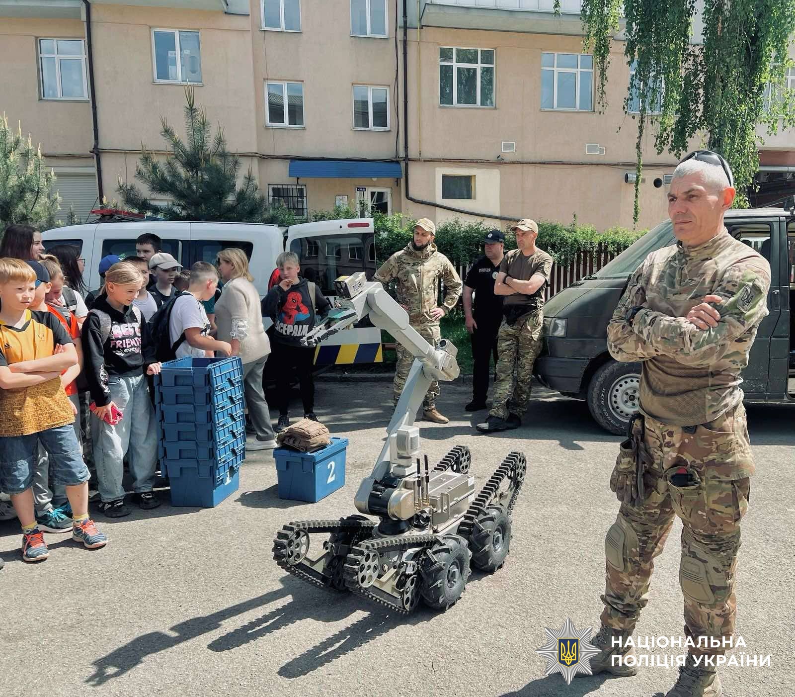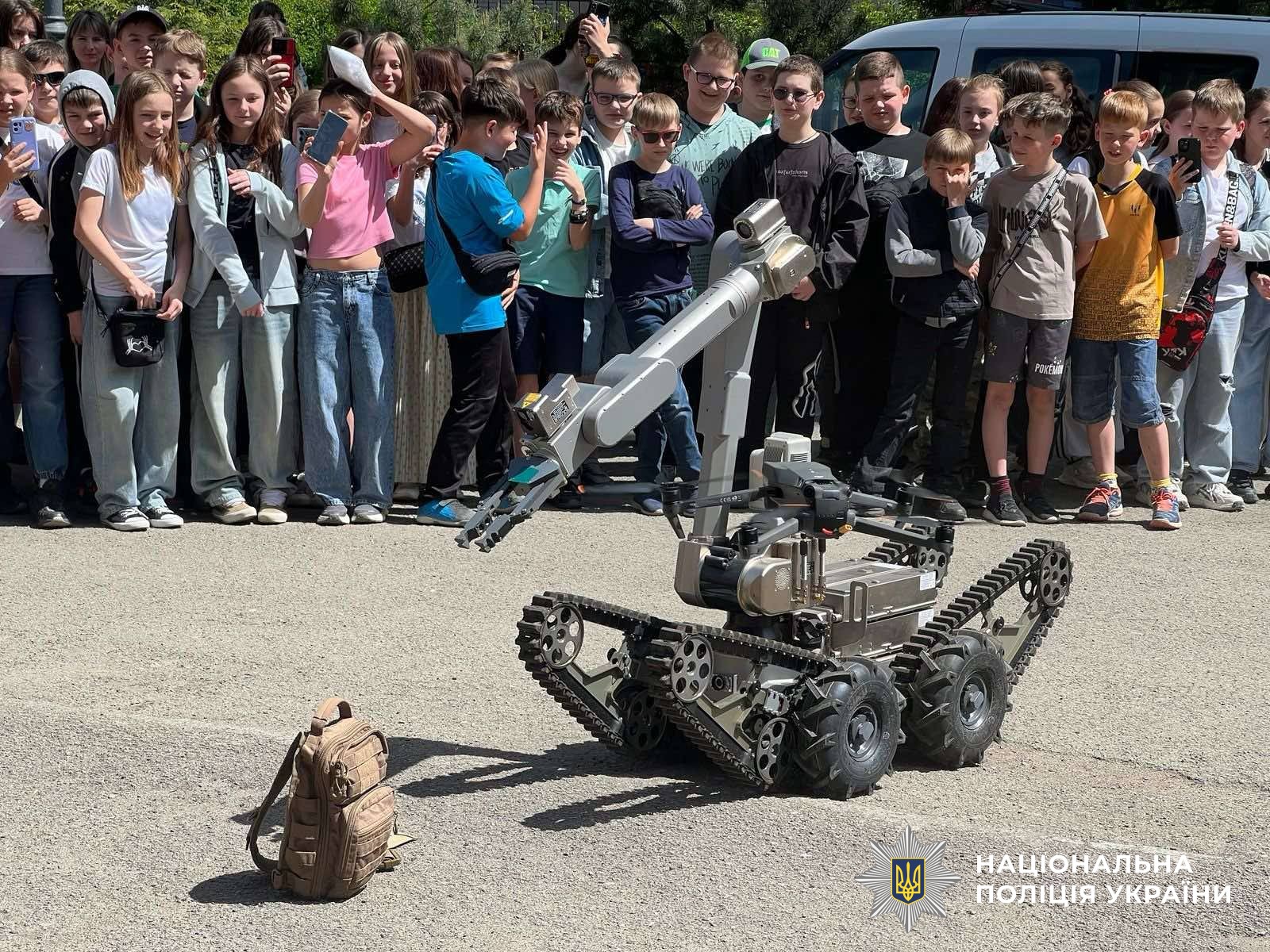 Згодом на подвір’ї навчального закладу поліцейські вибухотехнічної служби продемонстрували дітям спеціального робота. З його допомогою поліцейські перевіряють підозрілі предмети. Зокрема робот-маніпулятор може переміщувати рентгенівську установку для сканування складних місць. Це дуже важливо в роботі вибухотехніка, який не має права на помилку, коли працює з вибуховими матеріалами.
