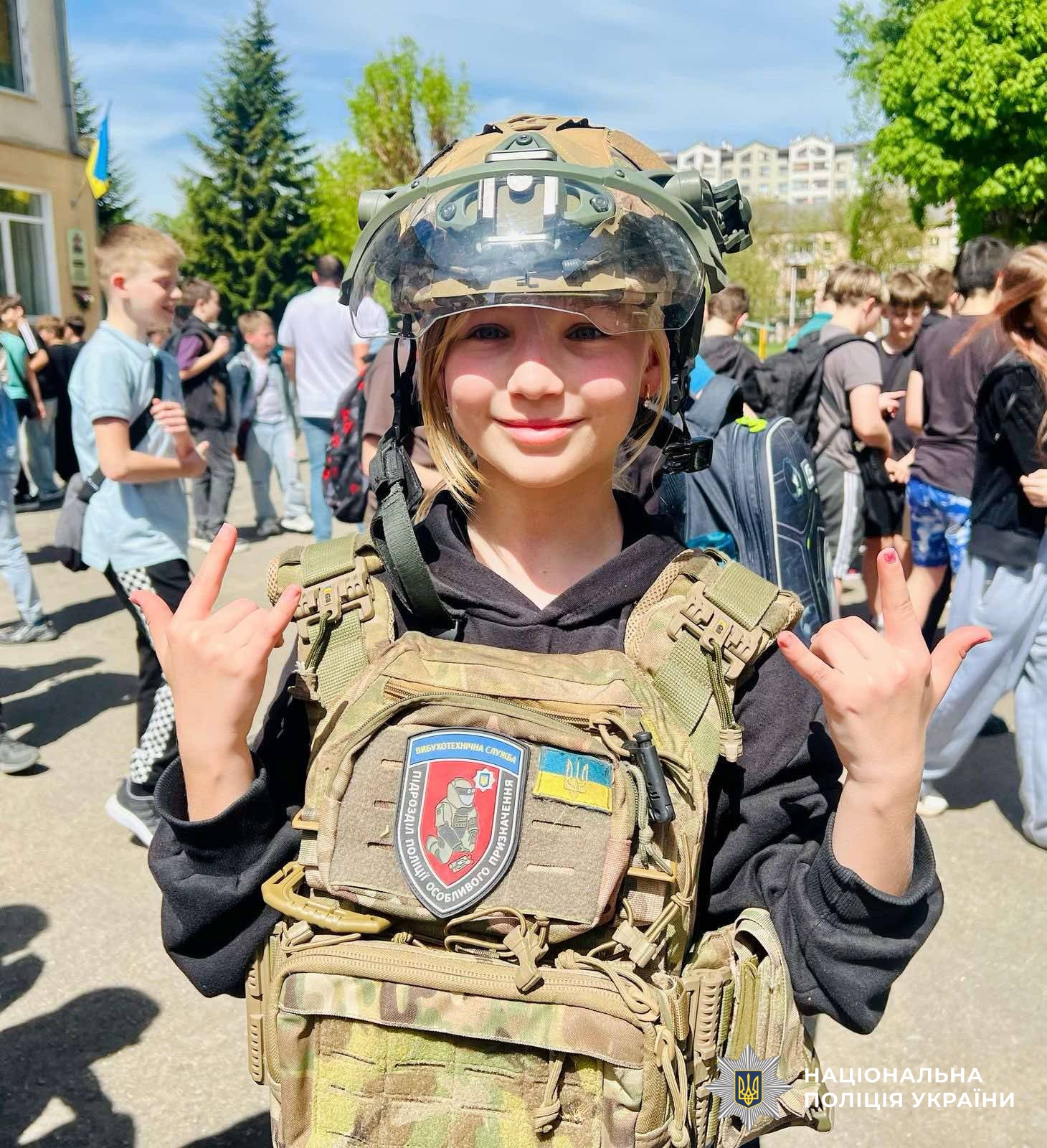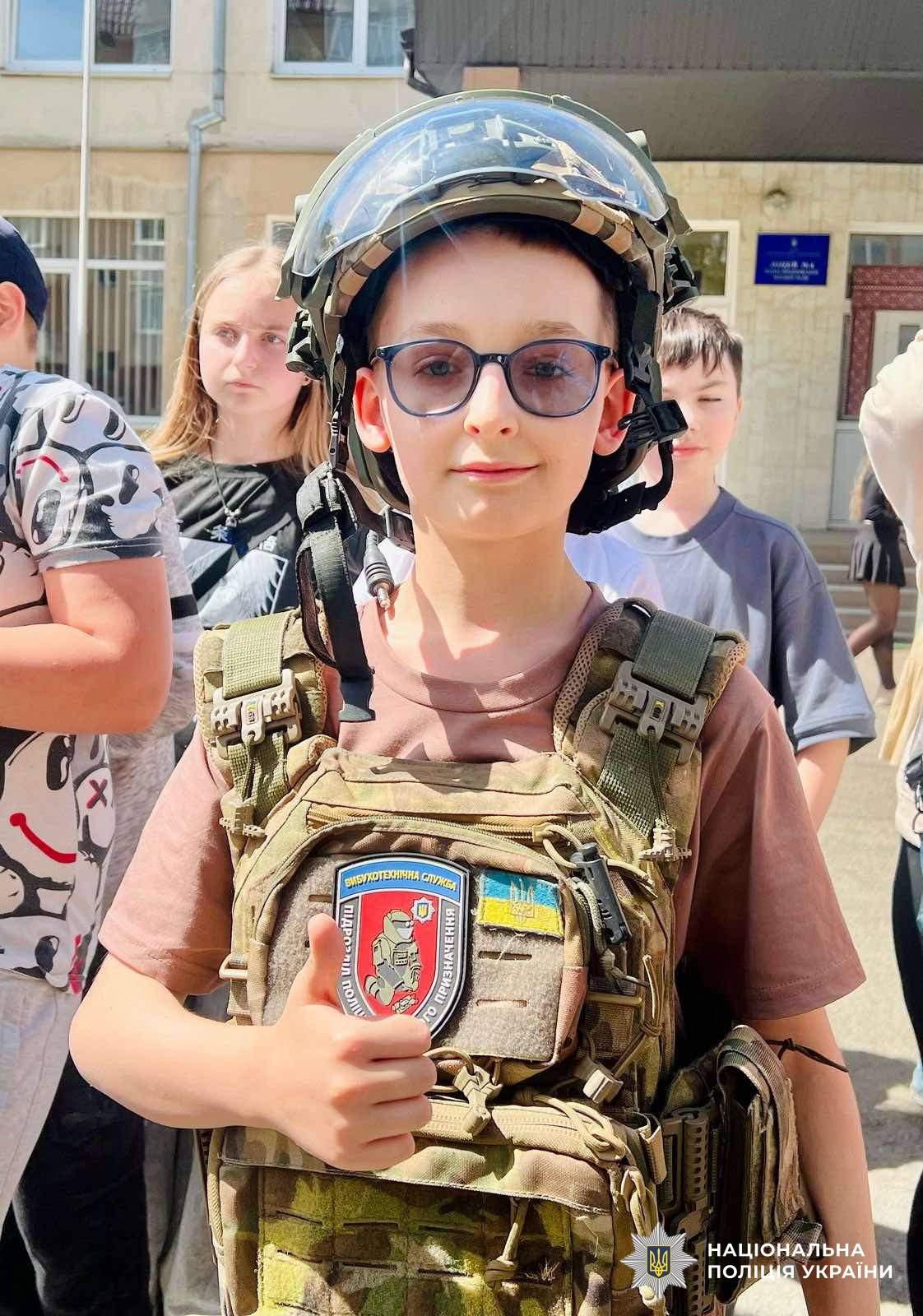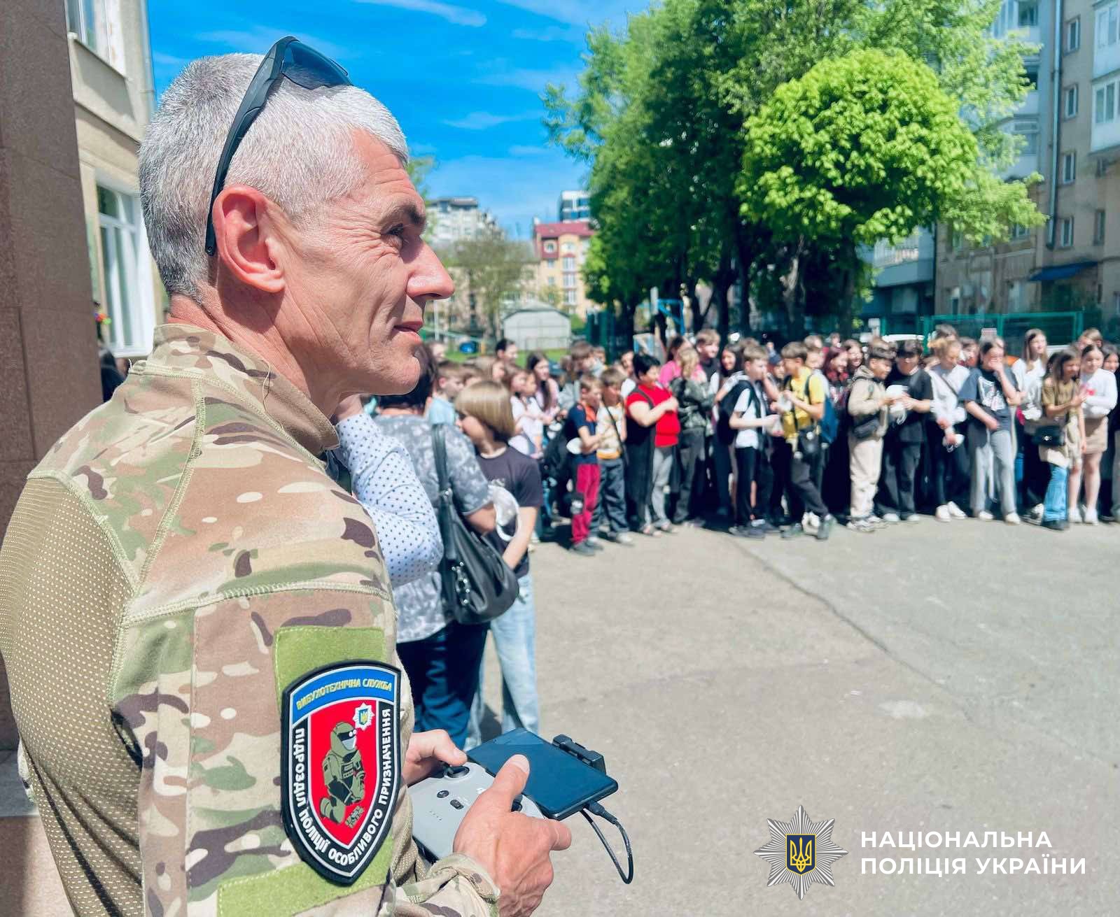 Згодом на подвір’ї навчального закладу поліцейські вибухотехнічної служби продемонстрували дітям спеціального робота. З його допомогою поліцейські перевіряють підозрілі предмети. Зокрема робот-маніпулятор може переміщувати рентгенівську установку для сканування складних місць. Це дуже важливо в роботі вибухотехніка, який не має права на помилку, коли працює з вибуховими матеріалами.